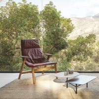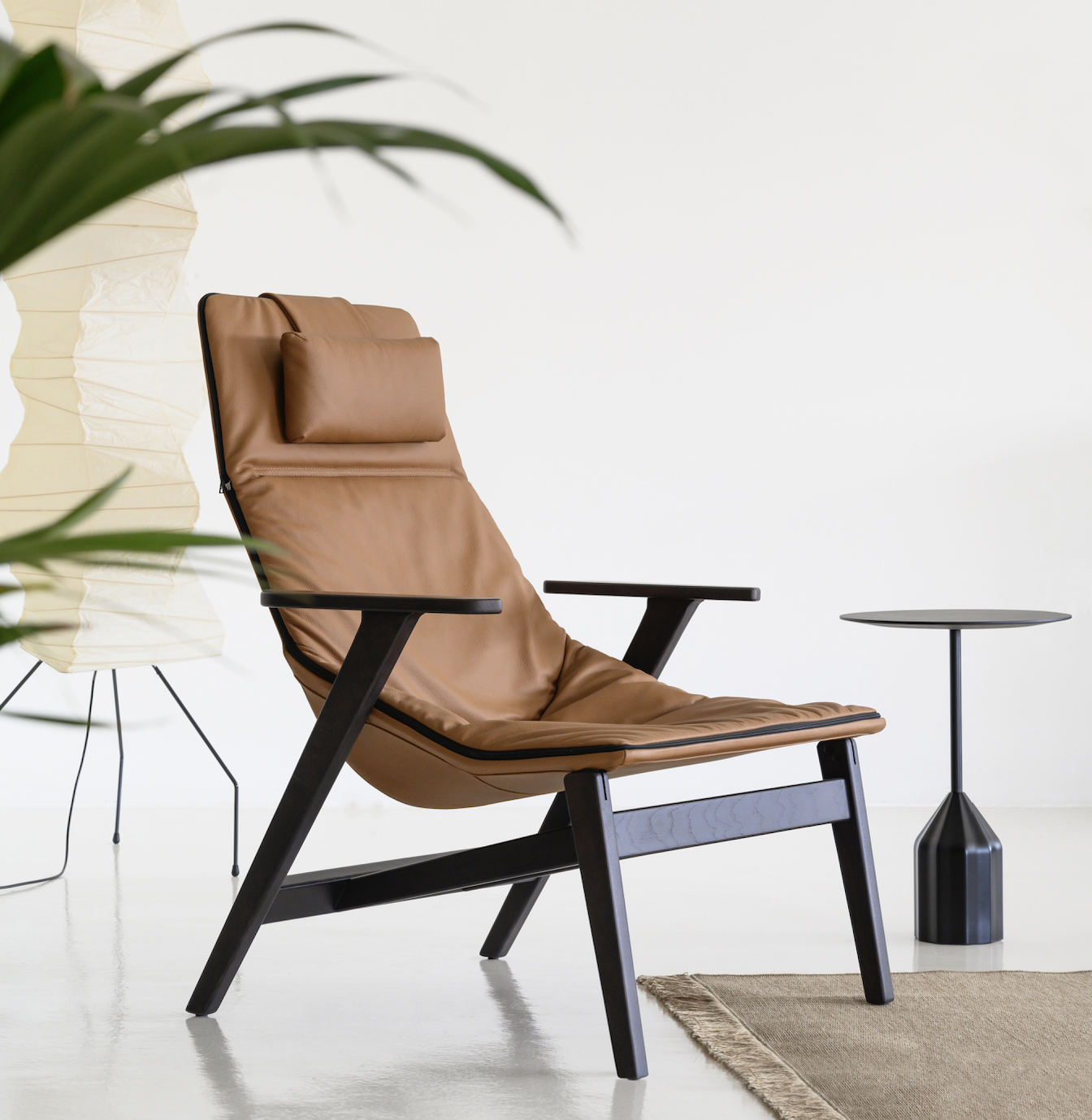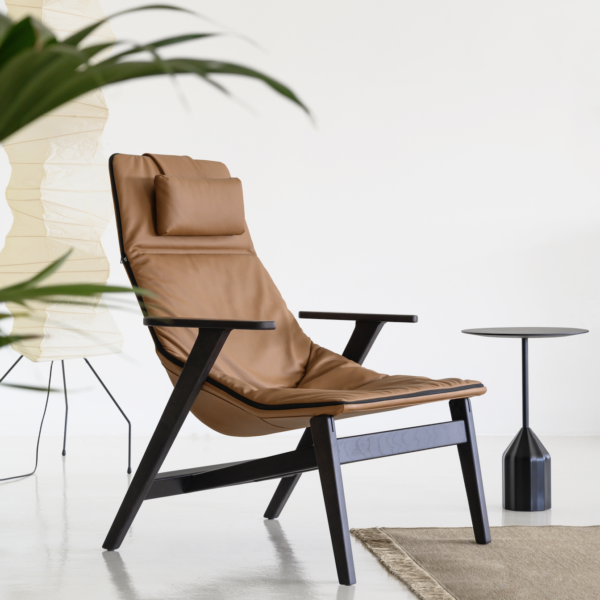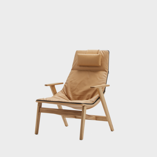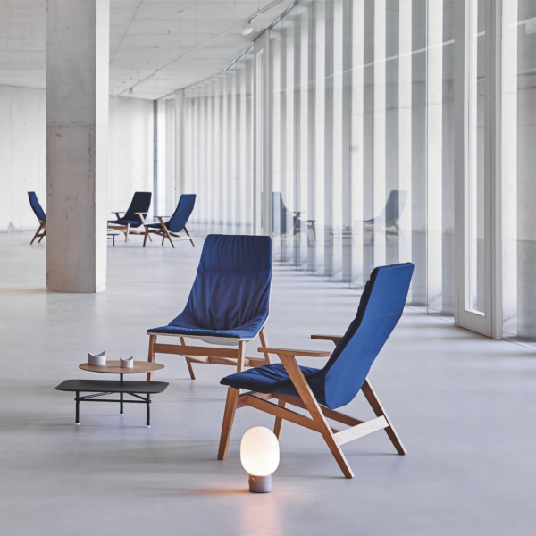Elegant and modern high back armchair with a relaxed design that makes it suitable for homes, public installations, meetings, collaborative spaces, hotels and offices.