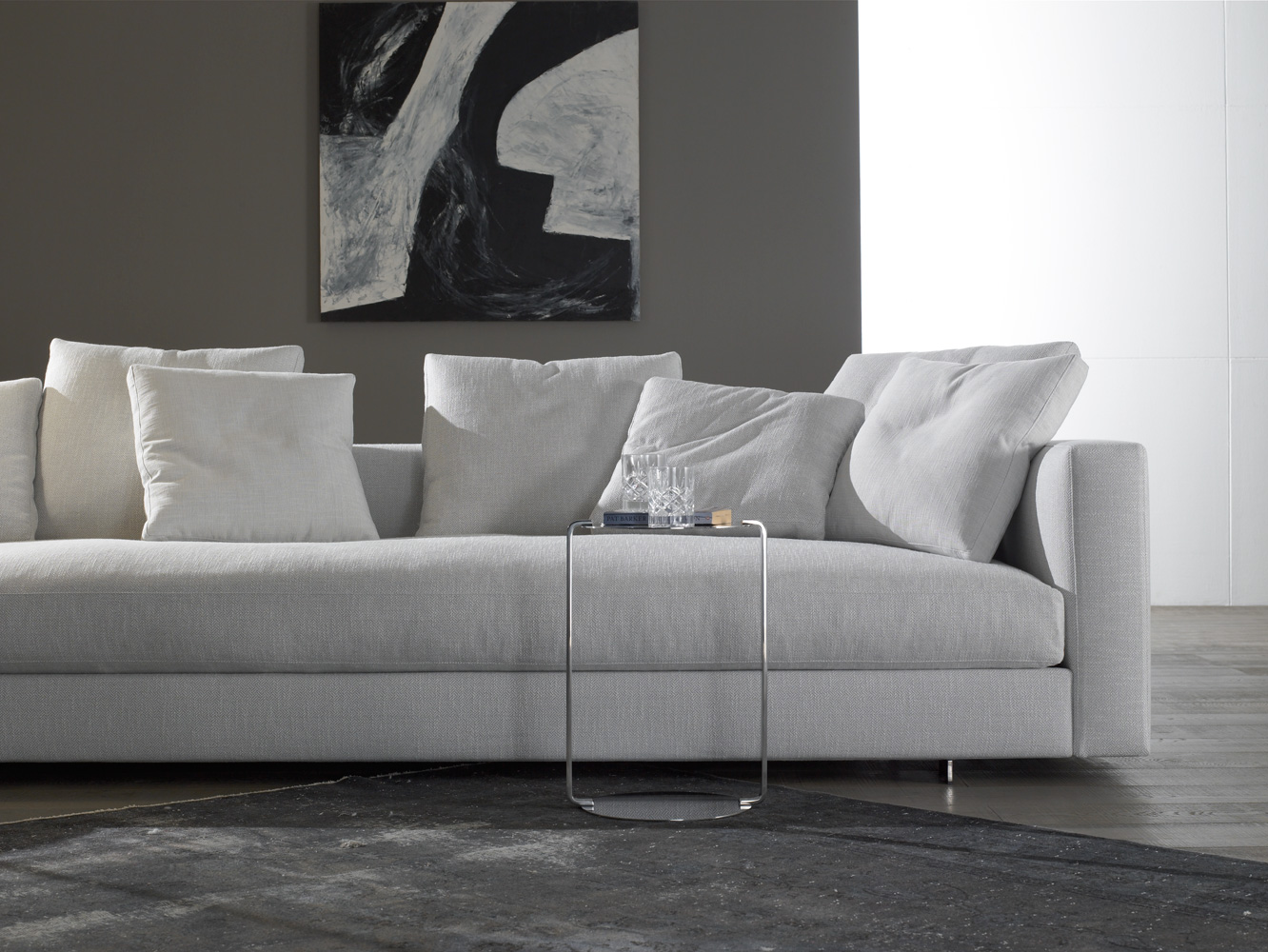 The main characteristic of the Alex collection is its seating portfolio with its contemporary design. The huge pile of cushions included permits to play with the seat depth. Furthermore, it allows to contrast the formality of its squared structure with the casualness of the distribution of the cushions. The collection includes many different sizes and pieces which can be combined and this way permit to create any kind of composition in order to adapt to the needs of your project.