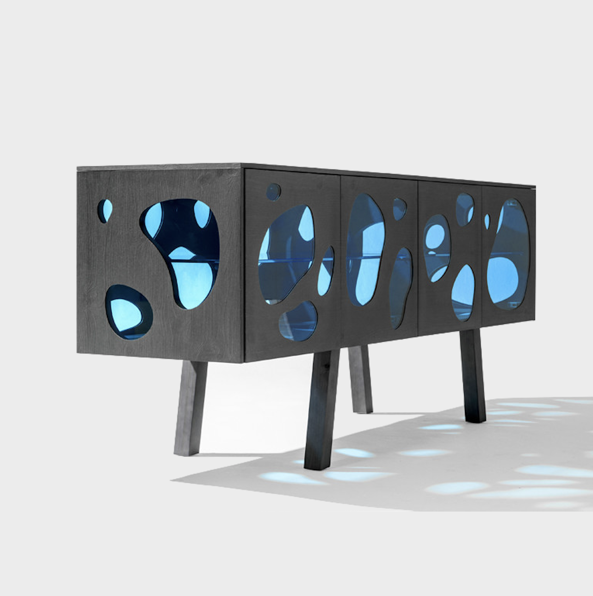 A design inspired in an aquarium having the artistic marked accent of its authors. They like to integrate the artisanal along with industrial production, creating hybrids in distinct materials. The mix, colour and creative chaos are all characteristics of Estudio Campana work, presented in the cabinet released by BD.