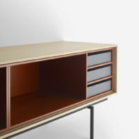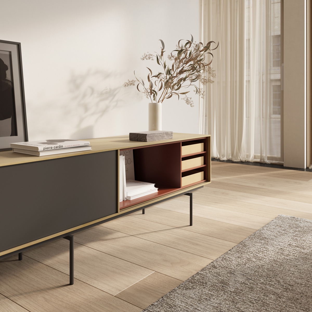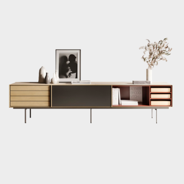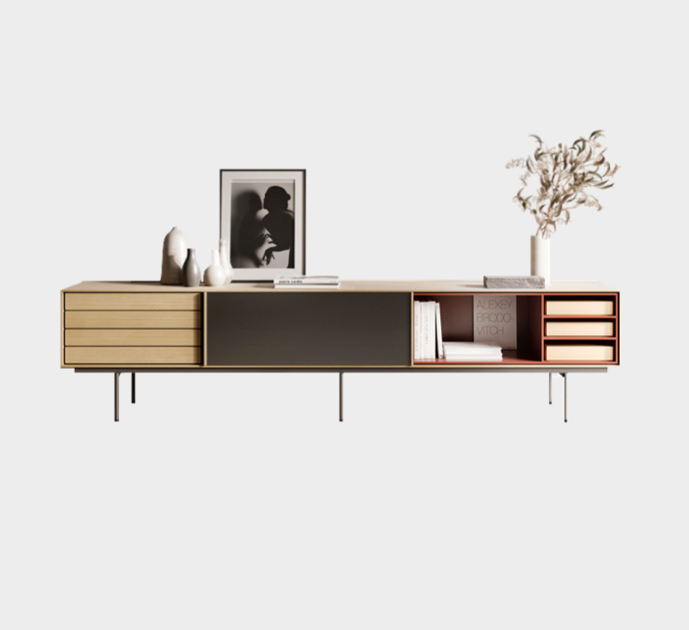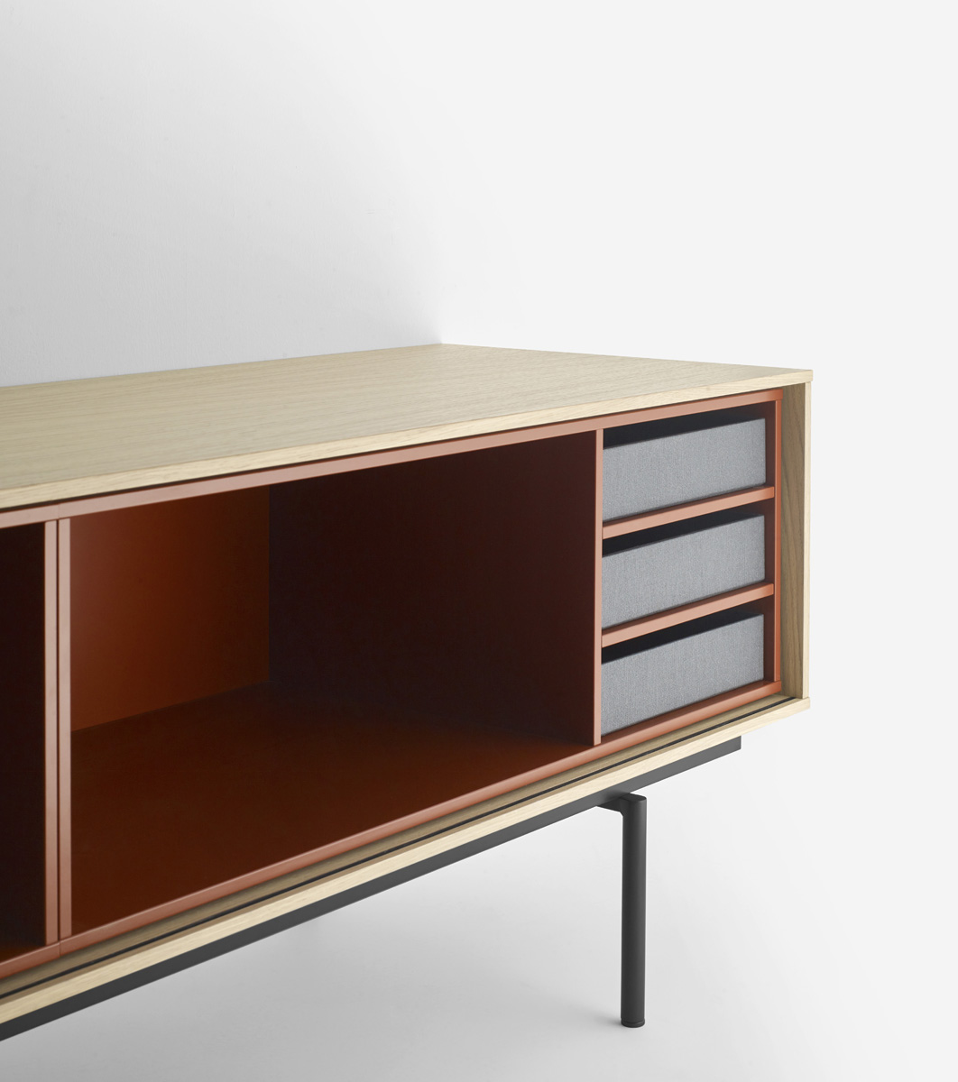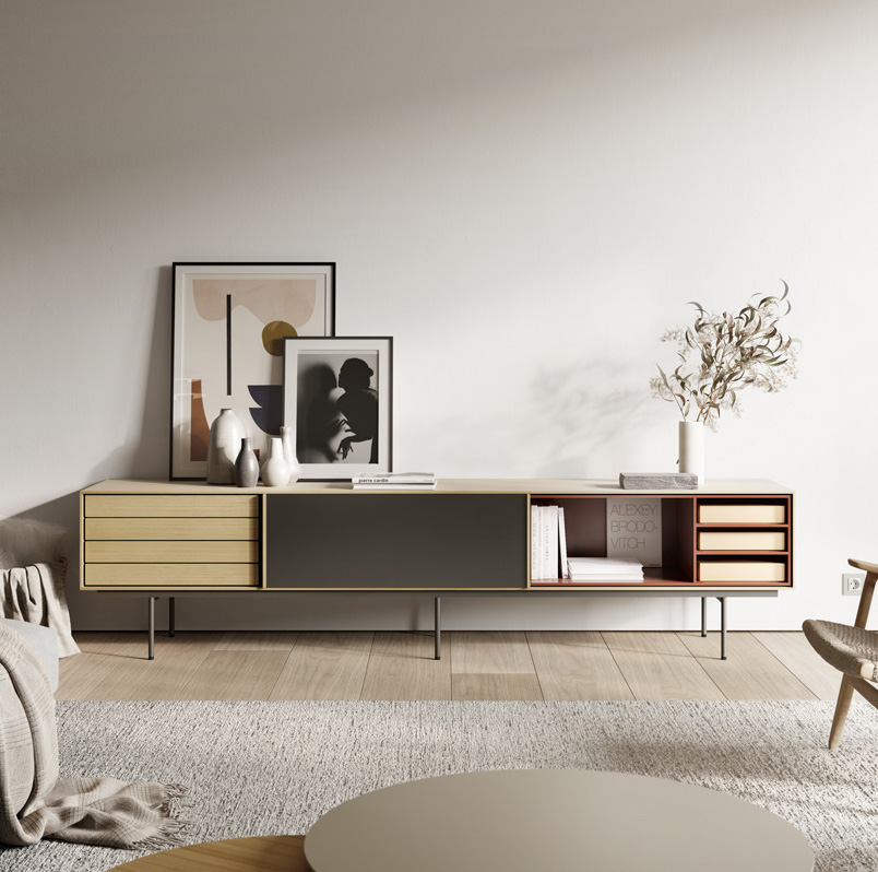 The Aura collection has been conceived mainly for sideboards and furniture for living rooms and dining rooms. Its design is inspired by the past and under the influence of the design culture of the Nordic countries, which know how to combine tradition and naturalness with large doses of modernity. The result: a collection full of memories that gives off a very modern aura. The metal and wood legs designed especially for the collection reinforce that retro and timeless look. The finish is very important: walnut and oak wood with a hyper-natural finish and a lacquered look which combine perfectly well with the wood.