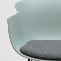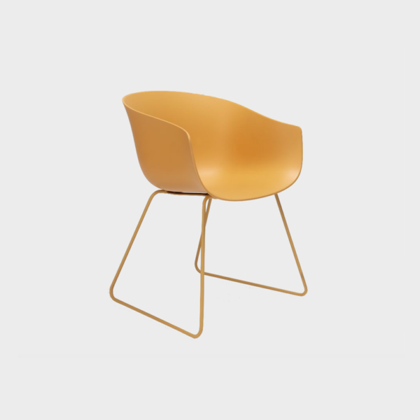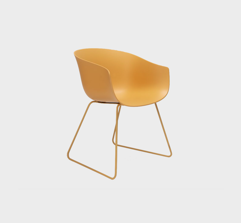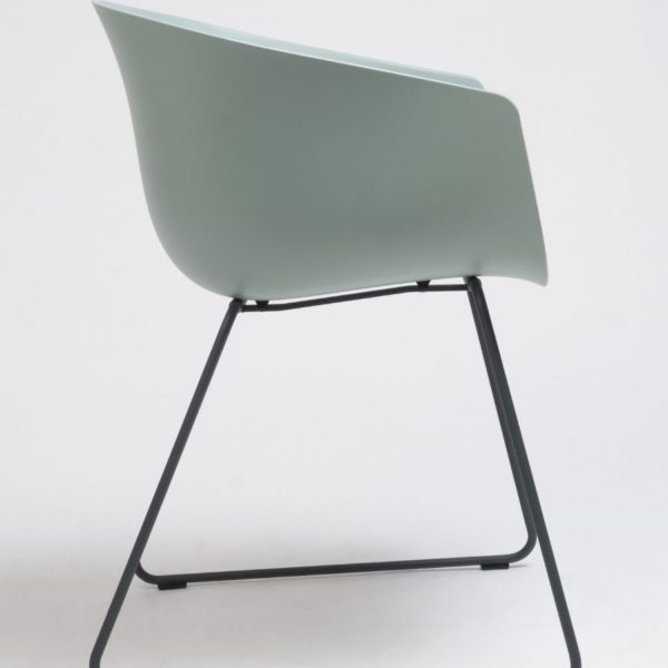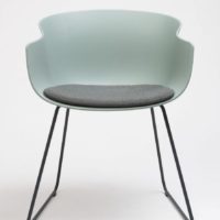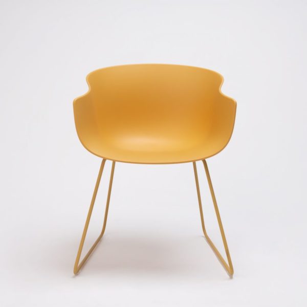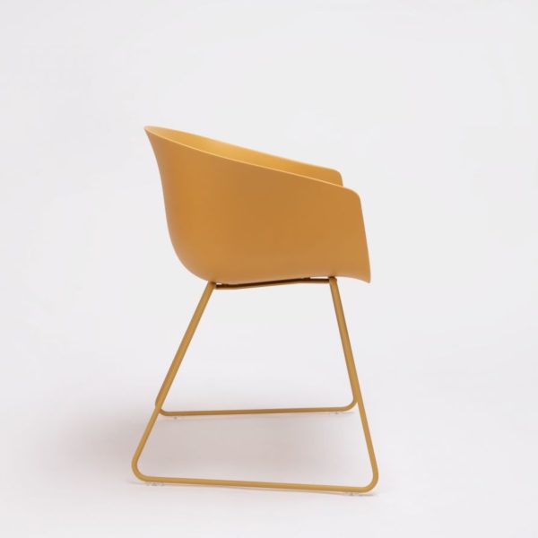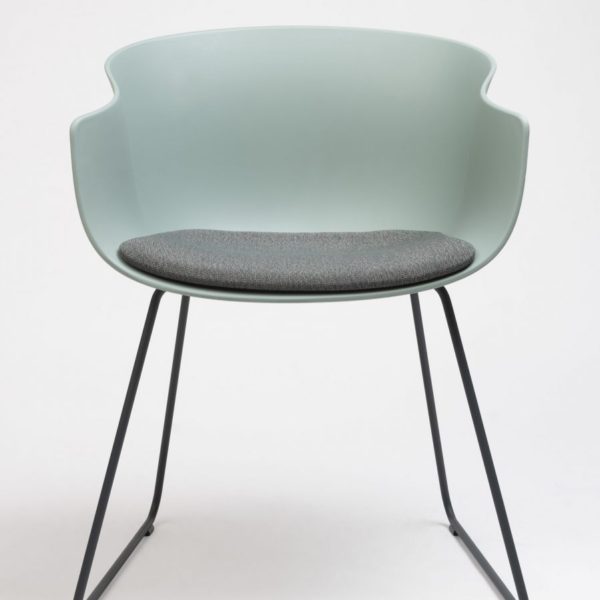 Generous proportions and wraparound lines, a versatile piece that has a noble and welcoming appearance. Its sled legs frame holds up a soft and organic seat in polypropylene with an upholstered seat pad.