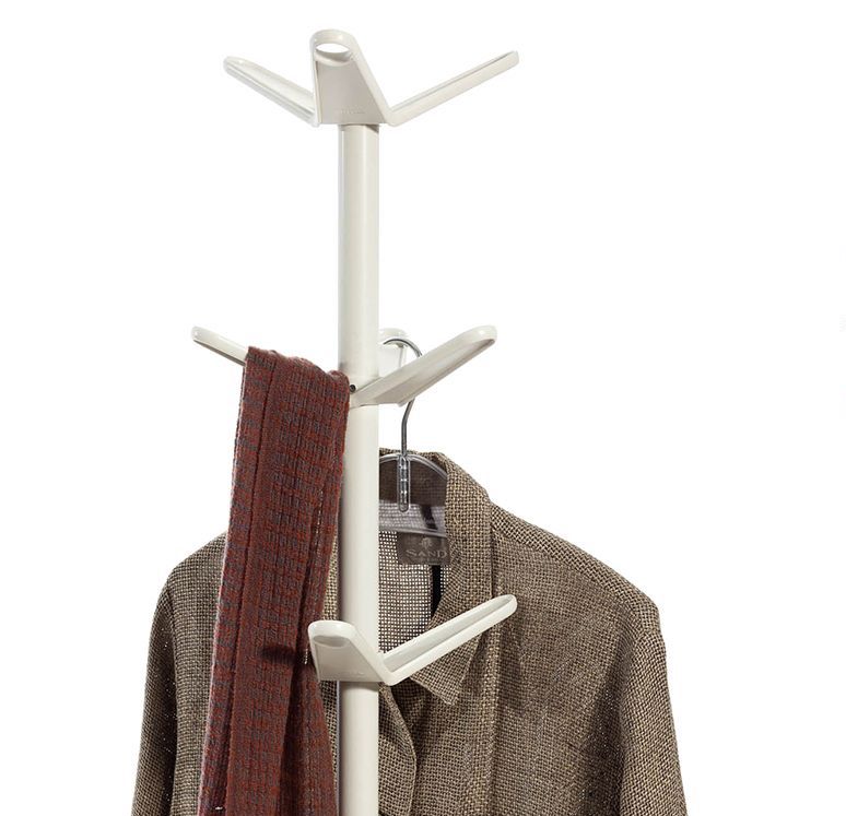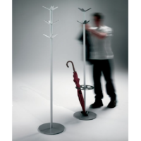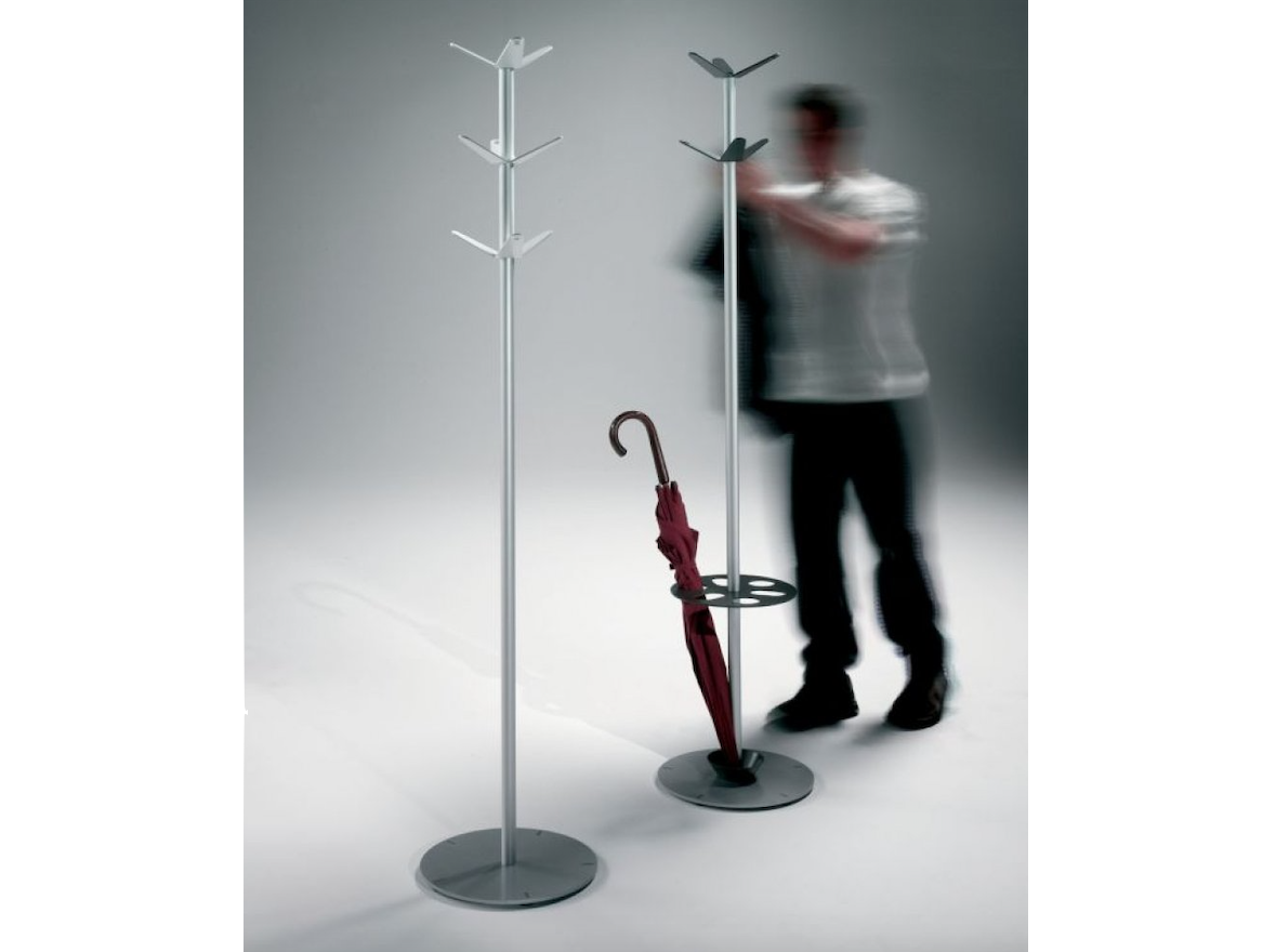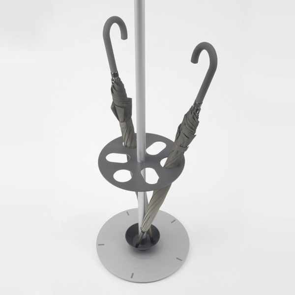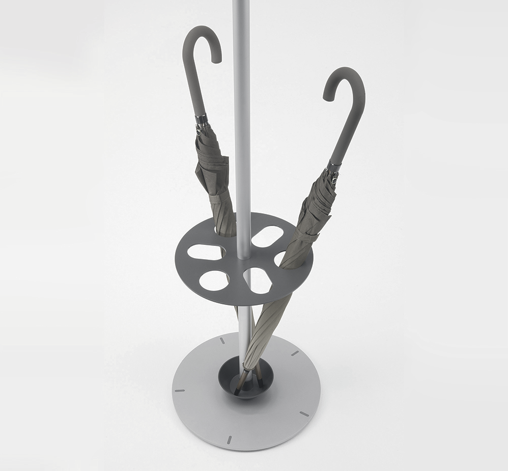 The separation of the pegs along the aluminium tube is reminiscent of circuits separating the elastic and static segments of bamboo canes. The natural elegance of the plant creates a dialogue with this unpretentious design that conveys naturalness. Bambu coat stand is made in three different colours to give all kinds of spaces an original, contemporary personality. Its simple structure is perfect for decorating offices or receptions as well as for the home. This version includes 6 hangers and umbrella stand.