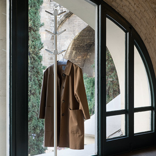 The separation of the pegs along the aluminium tube is reminiscent of circuits separating the elastic and static segments of bamboo canes. The natural elegance of the plant creates a dialogue with this unpretentious design that conveys naturalness. Bambu coat stand is made in three different colours to give all kinds of spaces an original, contemporary personality. Its simple structure is perfect for decorating offices or receptions as well as for the home. This version includes 9 hangers.