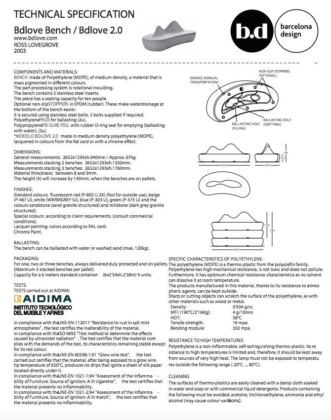 Lovegrove has created public seating that has all the character of exuberantly lively sculpture, with forms designed to engage the emotions. And its very generous dimensions allow it to seat up to ten people at once, as well as making it the children have a whale of a time. The bench is made from rotation-moulded polyethylene, a 100% waterproof material that is dyed during the manufacturing process to give suggest an infinite spectrum of attractive colours.