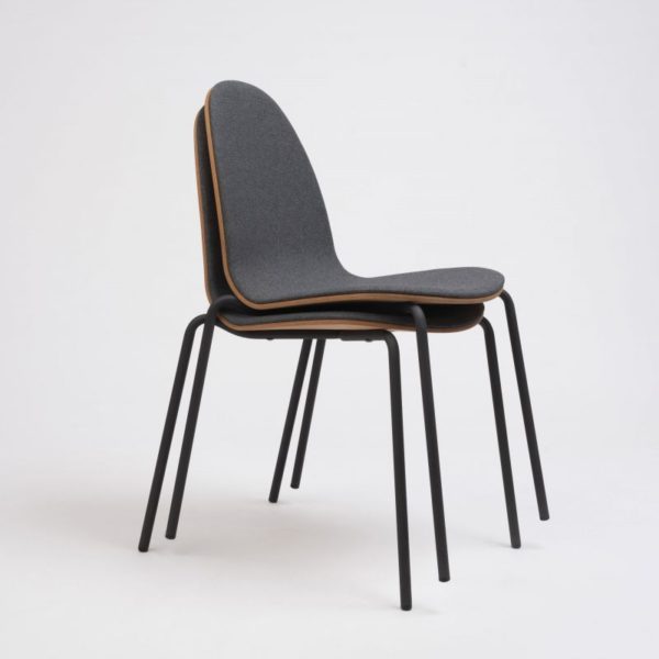 Steel legs available in epoxy finishes, front shell upholstery in all fabric finishes. Please specify. Other options like lacquer available upon request.