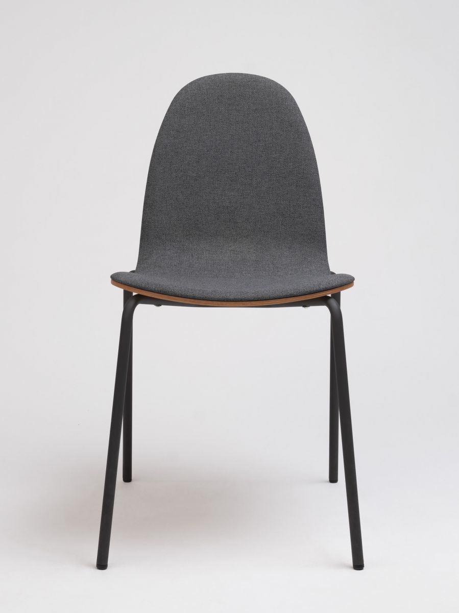 Steel legs available in epoxy finishes, front shell upholstery in all fabric finishes. Please specify. Other options like lacquer available upon request.