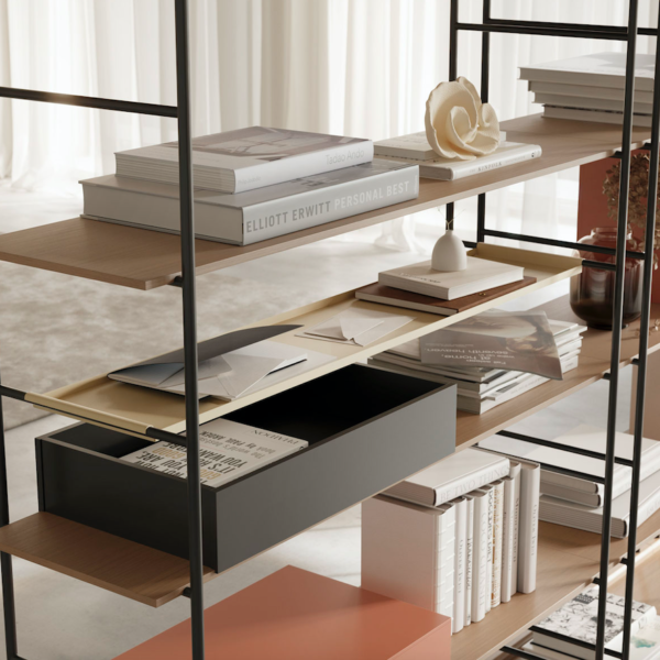Simplicity, innovation and originality. Without extravagance. This is the philosophy of Yonoh, the design studio that has created the new shelving system Bost for Treku. The result is a product that harmonises wood and metal organically and fits in different spaces whether in home or work environments.