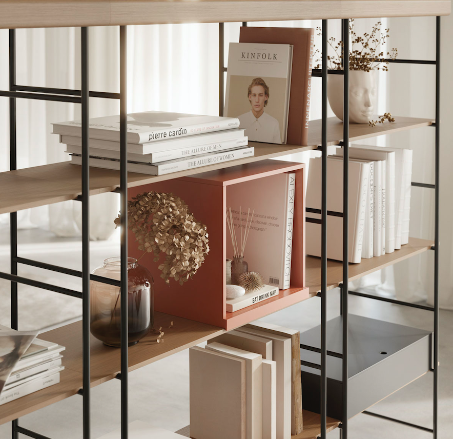 Simplicity, innovation and originality. Without extravagance. This is the philosophy of Yonoh, the design studio that has created the new shelving system Bost for Treku. The result is a product that harmonises wood and metal organically and fits in different spaces whether in home or work environments.