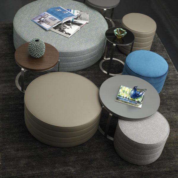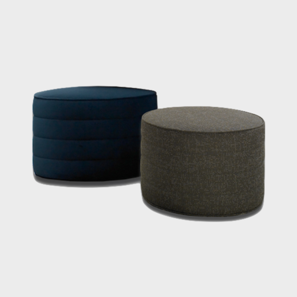 Brent is a collection of round poufs with tufted around its entire perimeter; this detail is its main distinctive future. The idea of the side seams originates from the barrels of oil, hence its name. The different sizes and shapes permit to place them in the center of the living room, in hotel receptions, at the foot of the bed, etc. … as well as auxiliary piece.