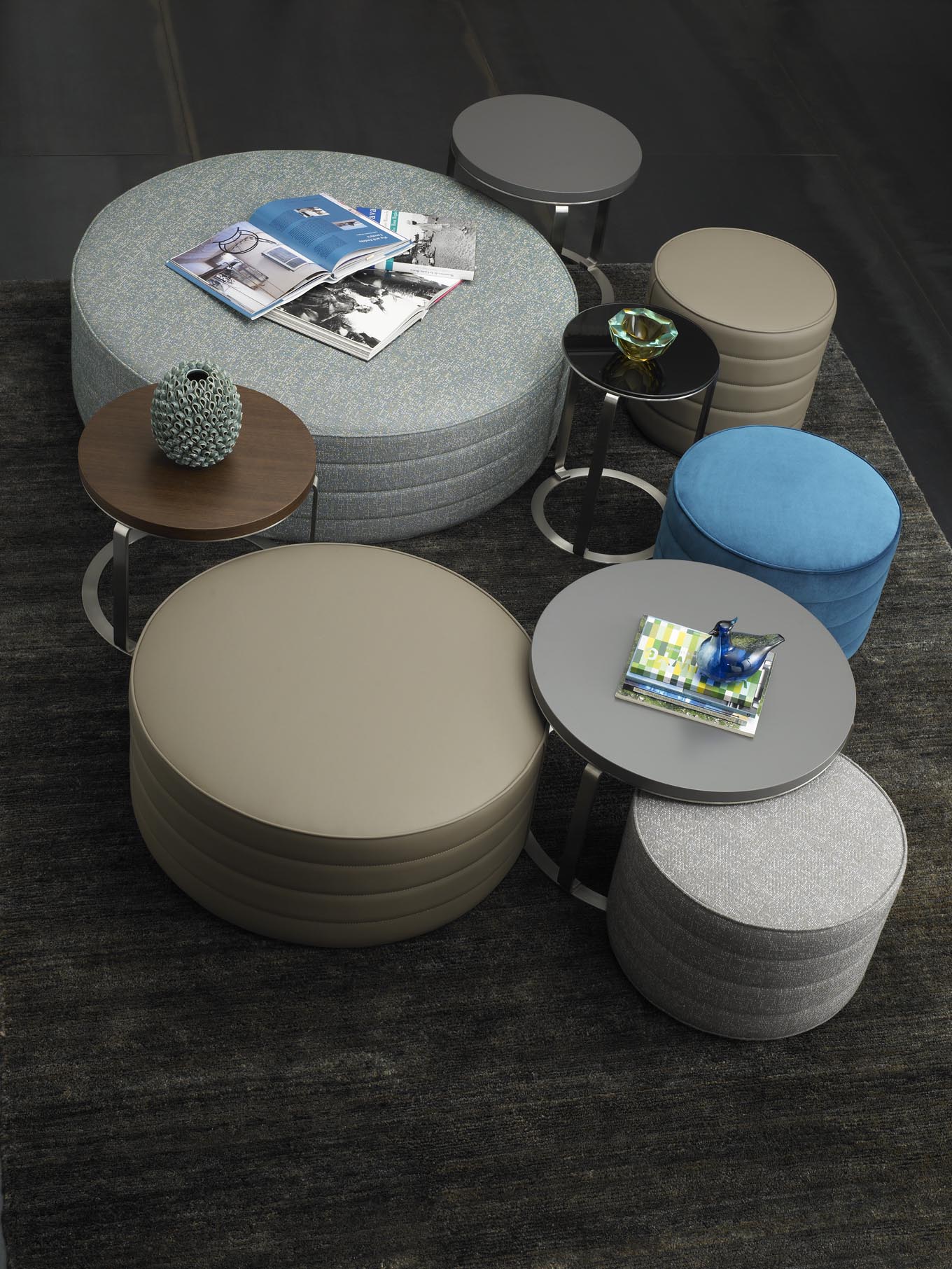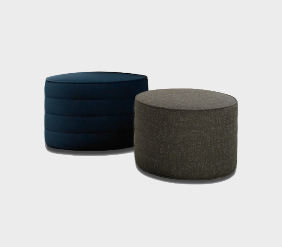 Brent is a collection of round poufs with tufted around its entire perimeter; this detail is its main distinctive future. The idea of the side seams originates from the barrels of oil, hence its name. The different sizes and shapes permit to place them in the center of the living room, in hotel receptions, at the foot of the bed, etc. … as well as auxiliary piece.