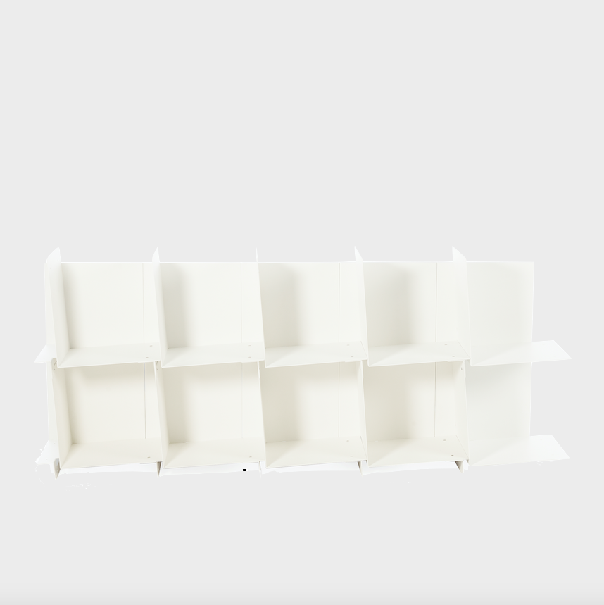 By yourshelf is a bookshelf which is always to your liking. Because you build it yourself from individual units, to get it the size and shape you want. And because you can combine the colours however you fancy. The result is just as you imagine. A strong, solid structure, which is also dynamic, as the shelves are slightly inclined to give a gentle sensation of movement.
