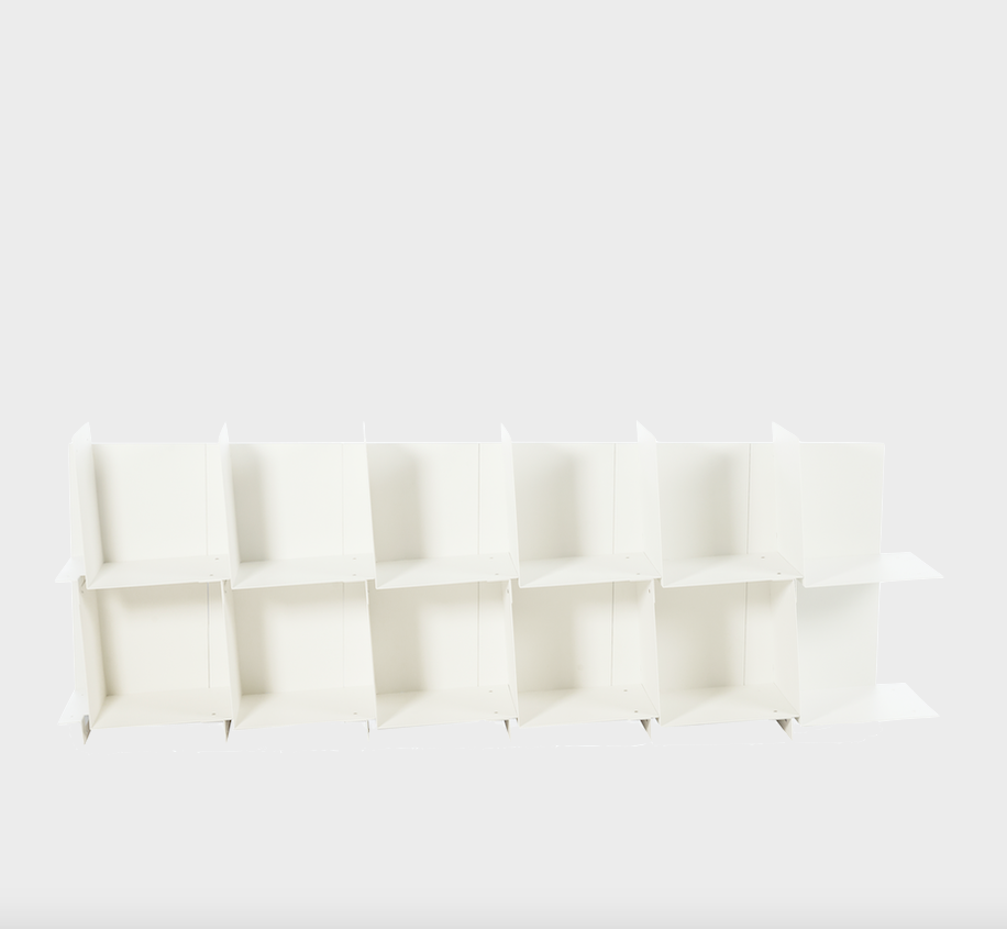 By yourshelf is a bookshelf which is always to your liking. Because you build it yourself from individual units, to get it the size and shape you want. And because you can combine the colours however you fancy. The result is just as you imagine. A strong, solid structure, which is also dynamic, as the shelves are slightly inclined to give a gentle sensation of movement.