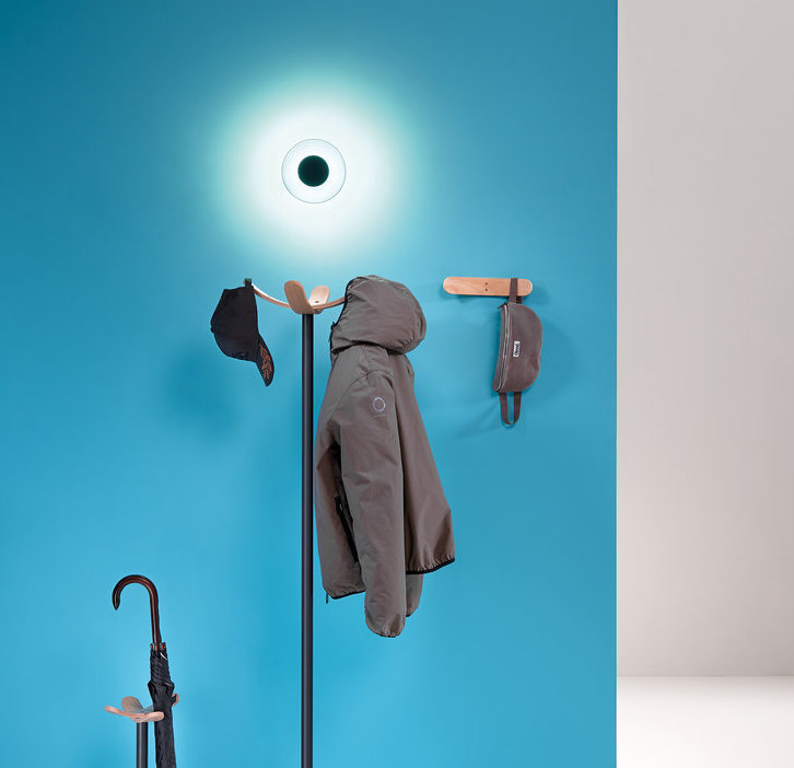 Combining the warmth of wooden hangers with a metal post and base. Umbrella stand also available with a coat stand in different versions. It is ideal for environments where a touch of warmth is sought.