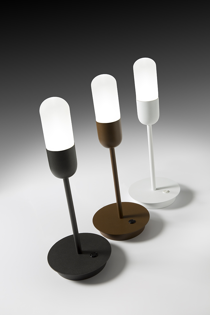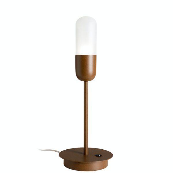 The available versions are table, floor and hanging lamp. The diffuser is made of opal blown sandblasted glass. The structure and the 200 mm diameter shade are made of iron, which comes in three textured finishes: white, anthracite grey and corten brown, in a very contemporary monochrome concept. CapsuleHat includes G9 sockets to facilitate the end user to choose the intensity and tone of light required, although it is recommended to use a 5W 3000K 450lm LED lamp.