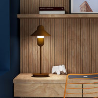 The available versions are table, floor and hanging lamp. The diffuser is made of opal blown sandblasted glass. The structure and the 200 mm diameter shade are made of iron, which comes in three textured finishes: white, anthracite grey and corten brown, in a very contemporary monochrome concept. CapsuleHat includes G9 sockets to facilitate the end user to choose the intensity and tone of light required, although it is recommended to use a 5W 3000K 450lm LED lamp.