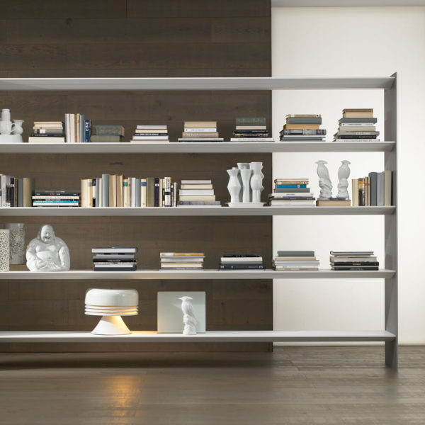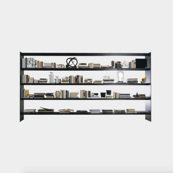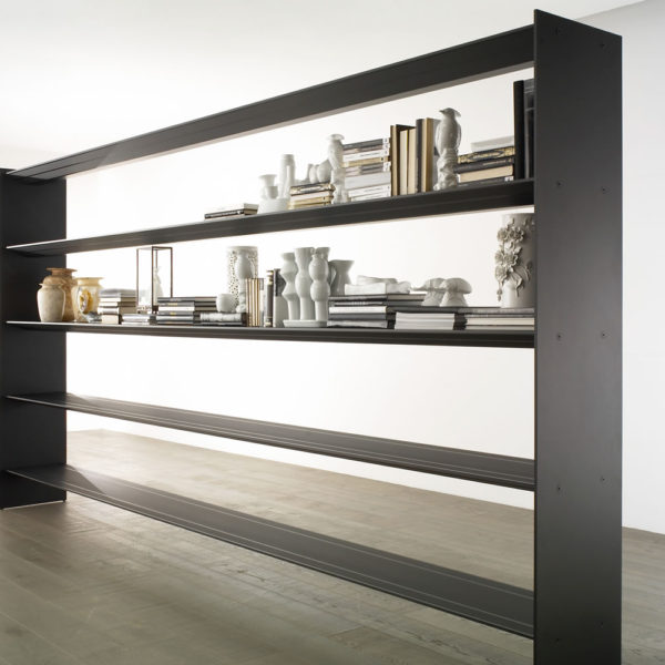 Carandache is the result of the technique applied to aluminium. Its beauty lies in the simple execution of the basic line with no more ornaments or superfluous, is the essence of less is more. Its resolution technique allows shelves to be up to four metres in length with only two joining sides this way combining a great lateral stability and excellent rigidity. It comes in two possible finishes: anodised or lacquered.