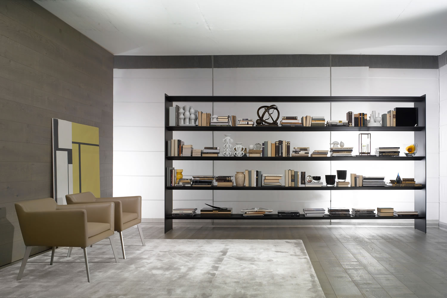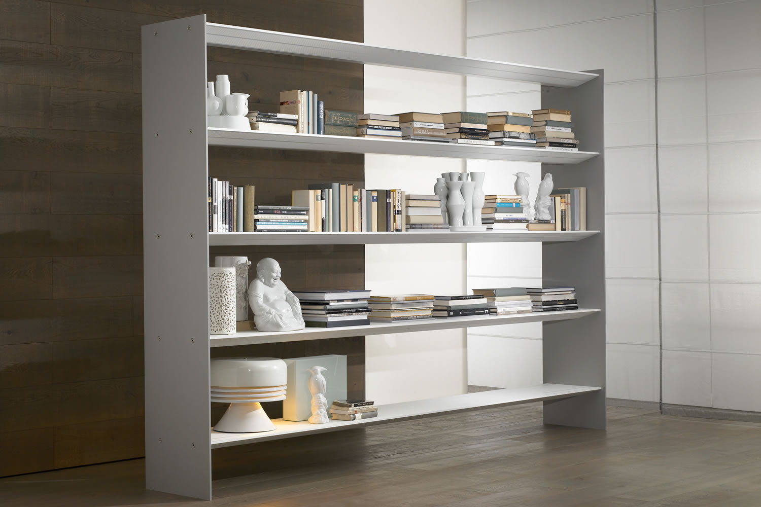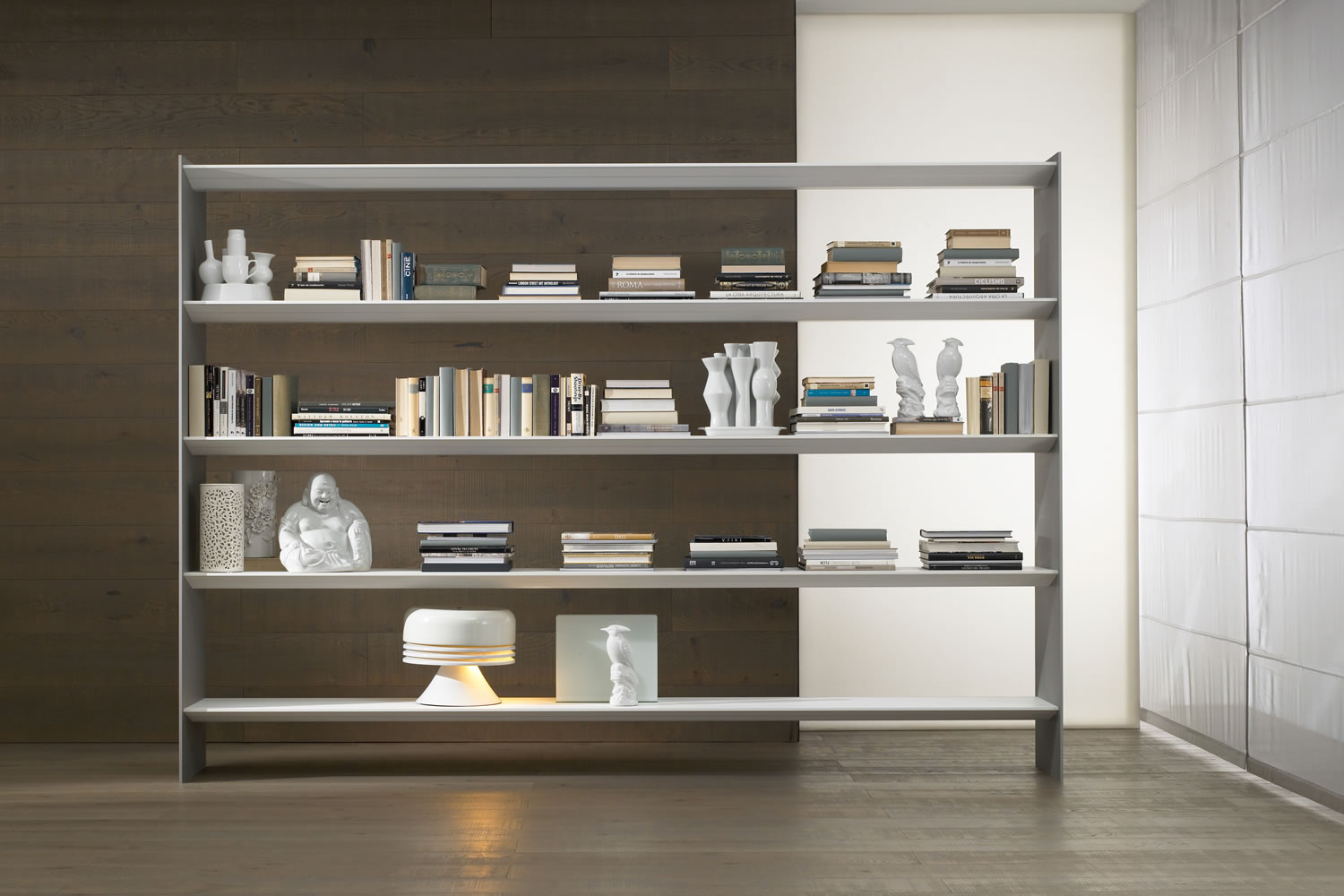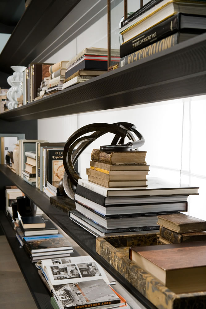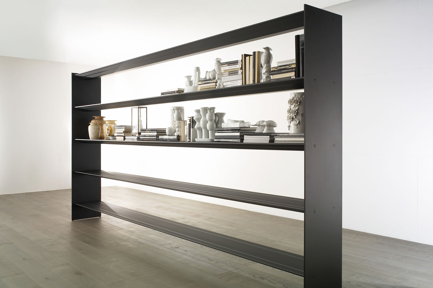 Carandache is the result of the technique applied to aluminium. Its beauty lies in the simple execution of the basic line with no more ornaments or superfluous, is the essence of less is more. Its resolution technique allows shelves to be up to four metres in length with only two joining sides this way combining a great lateral stability and excellent rigidity. It comes in two possible finishes: anodised or lacquered.