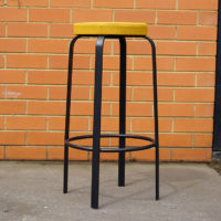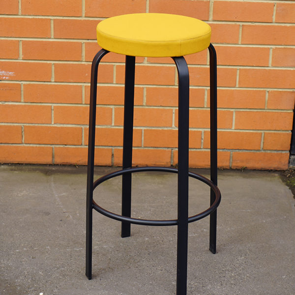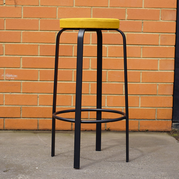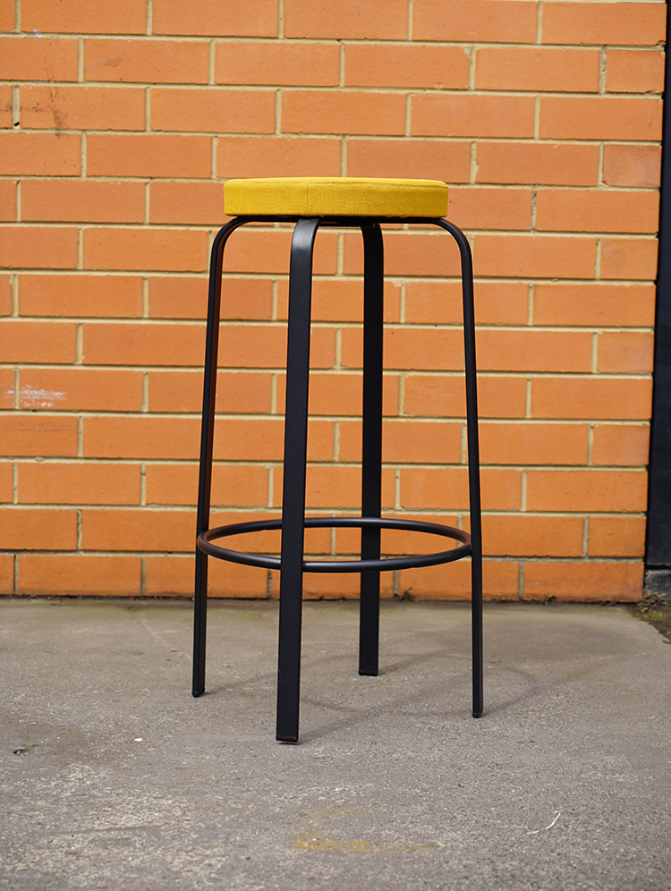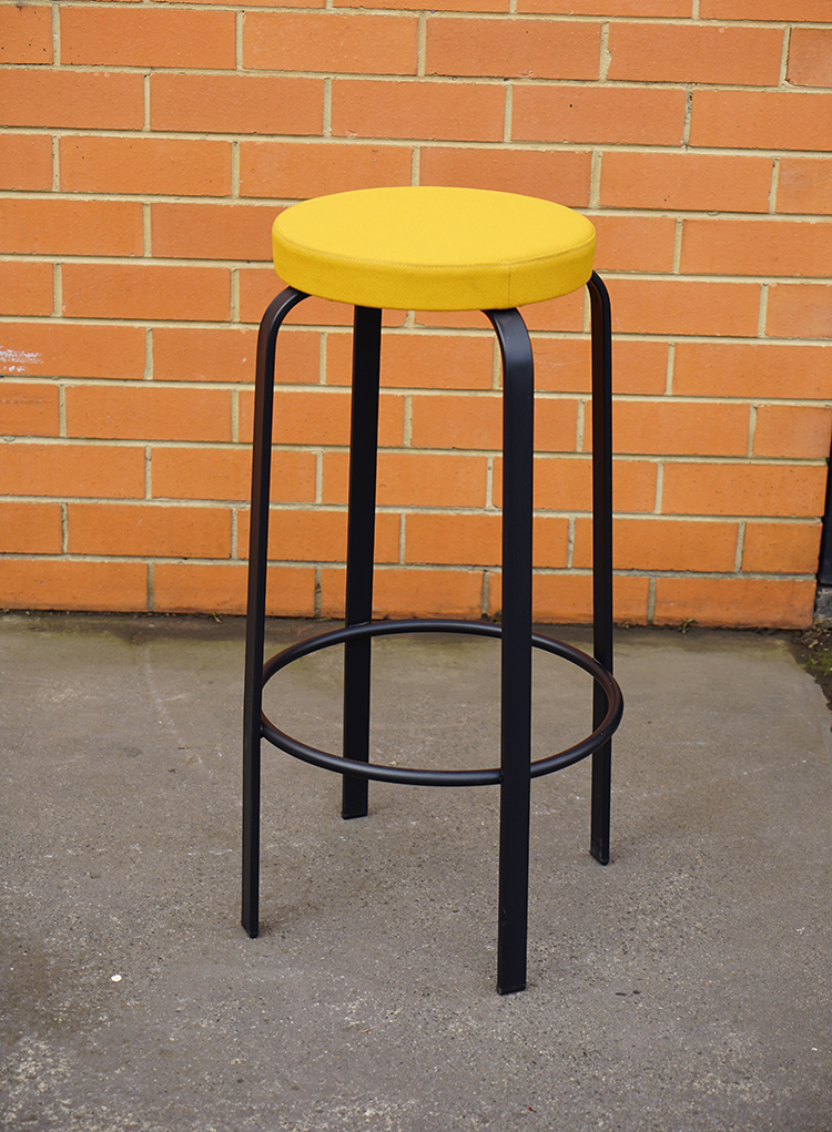 Black epoxy lacquered metal structure and upholstered seat.