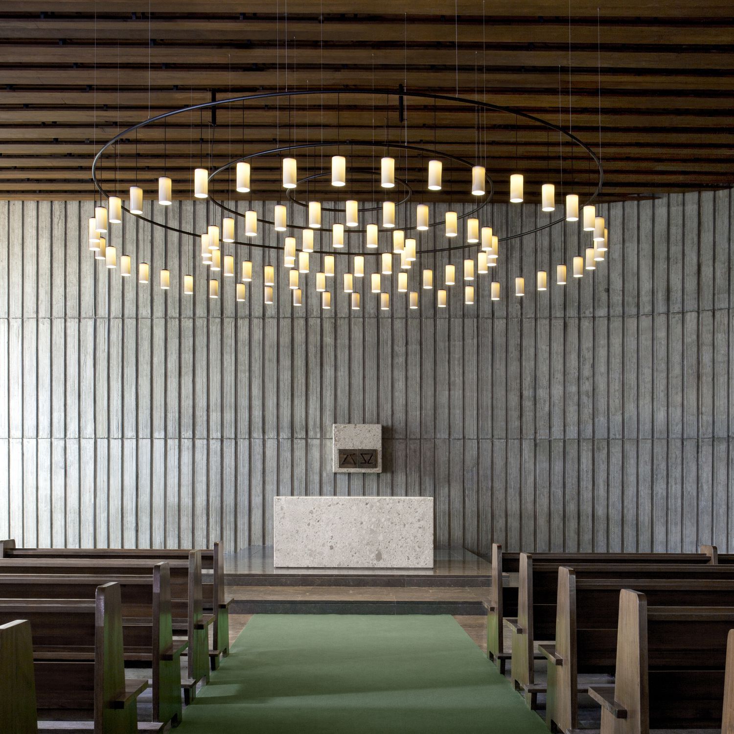 Cirio is a system that provides customisable solutions for vertiĀ­cal lighting by combining structures, shades and light textures. The polyvalent structure of Cirio Circular and Cirio Oval allows for circles with differing diameters to produce a range of formats. Cirio Oval combines straight lines and semi-circles, producing lamps that are as large as necessary.
