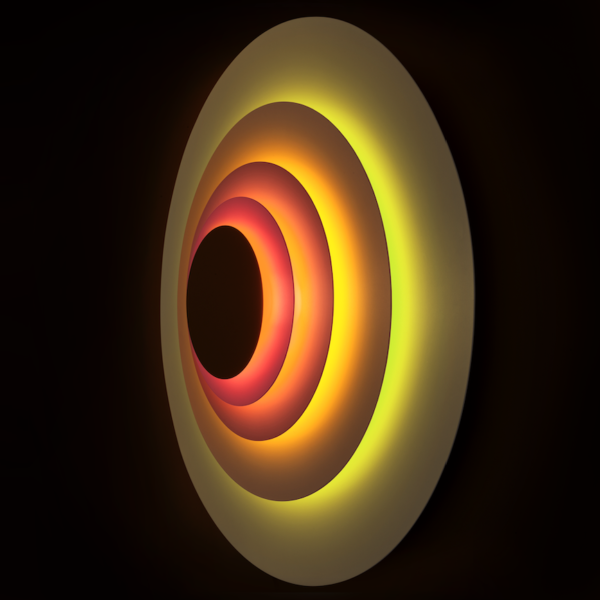 Because of its pure symmetrical shape, Concentric plays with these reminiscences of the sun. It comes in three different sizes and two different colour combinations: the Corona model with neon colours and the Major model with warm colours.