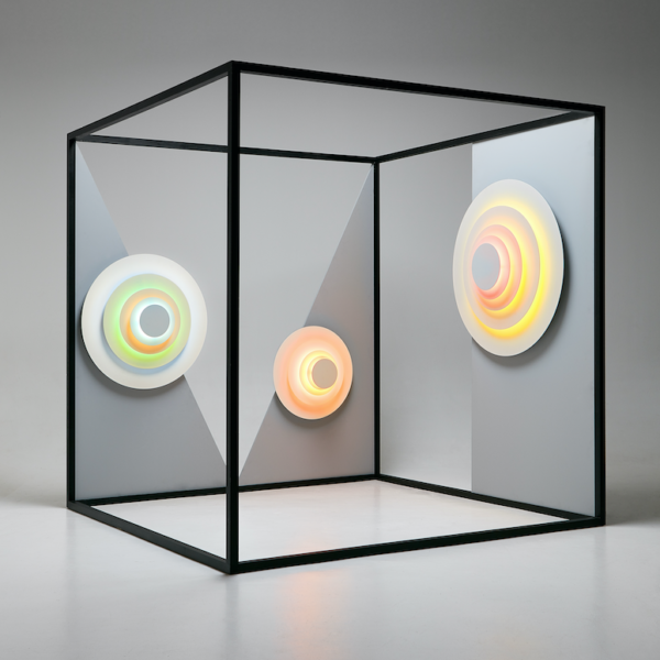 Concentric is a visually striking lamp whether it’s on or off, though turned on in the dark is when it becomes the most impressive and dynamic. The effect it promotes is almost hypnotic, because of the way the light vibrates when we view it.