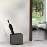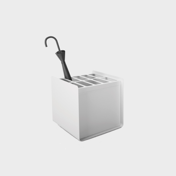 Aluminum umbrella stand that is incorporated into the Crepe family to expand its versatile use and possibilities for combination. It includes a plate to collect the water and a grid to separate the umbrellas into compartments.