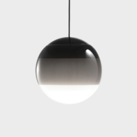 Hand-blown glass lamp in glossy white with different layers of paint. The suspension version adds a polycarbonate cover at the top that rounds out the spherical shape.