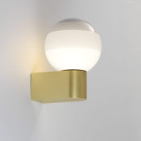 Hand-blown glass lamp in glossy white with different layers of paint. The wall version has a metal support that holds up the diffuser.