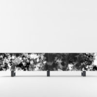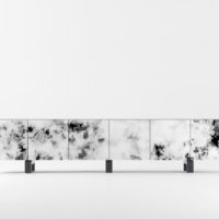 Containers, doors and drawers are made of DM fiberboard in different widths and lacquered in black matte. Superficial tops, fronts and laterals are made of printed tempered 6mm glass. Legs are in solid ash wood. Internal drawers include a full-opening extension and soft-close glide system (maximum 30Kg).