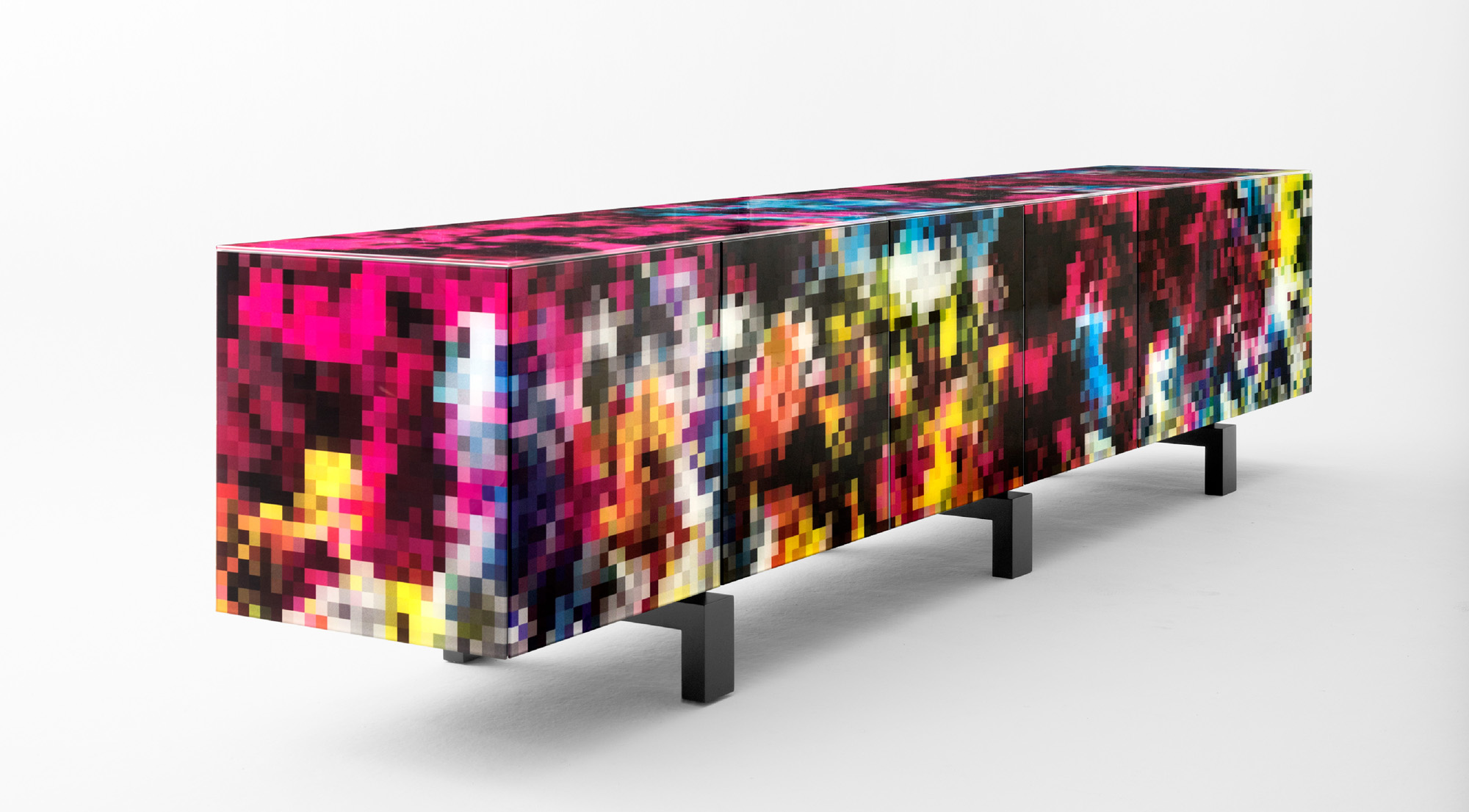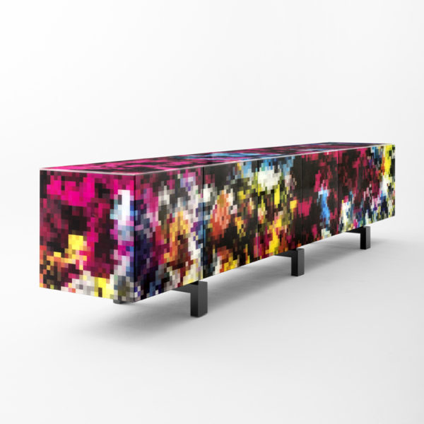 The Dreams Cabinet is presented in four versions: Colour, all Black, Black and White. Few pieces allow for interventions with such personality without affecting the function for which they have been created. They convert into sculptures for a living room in a house or a hotel foyer.