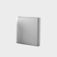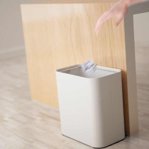 36-liter bin with lid. Made of galvanized steel and painted with baked lacquered thermoset powder. It includes a galvanized steel inner ring that holds the bag.