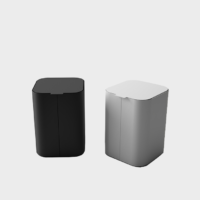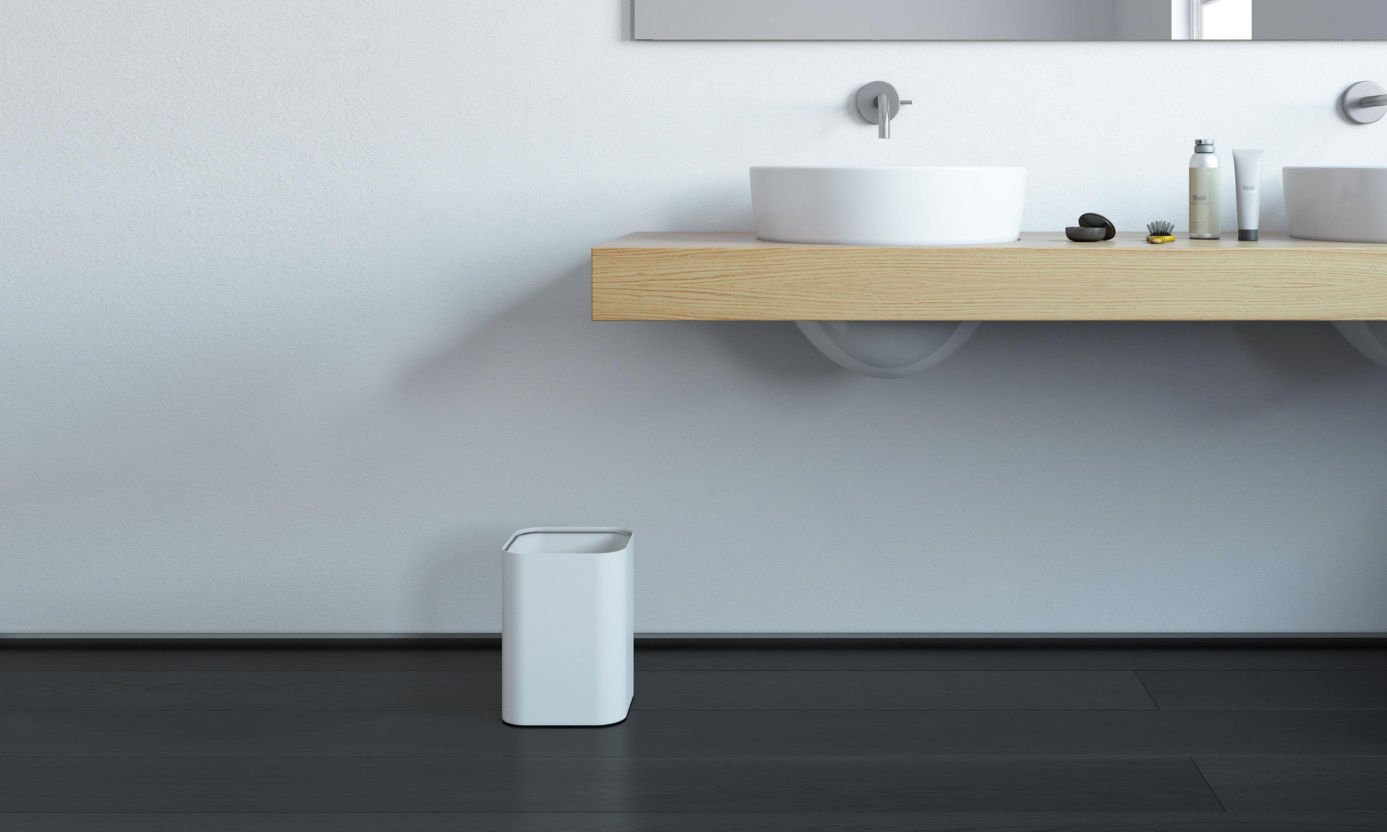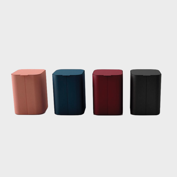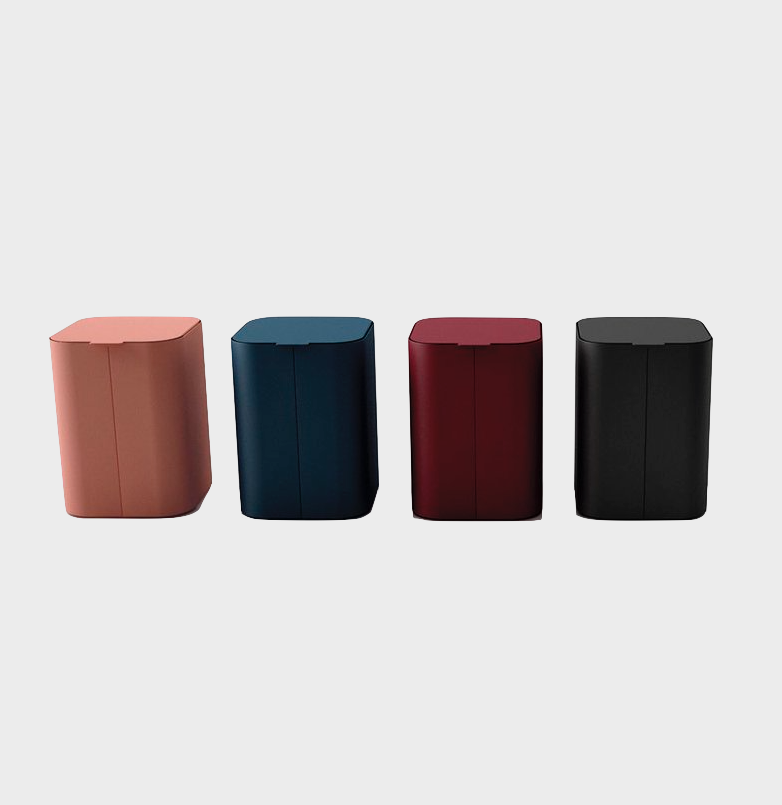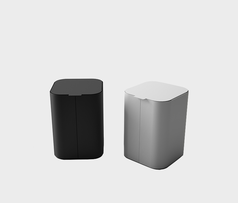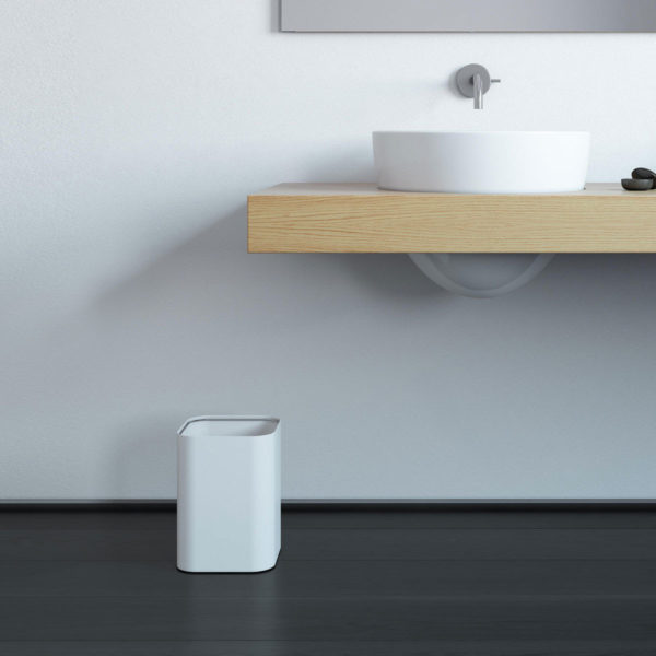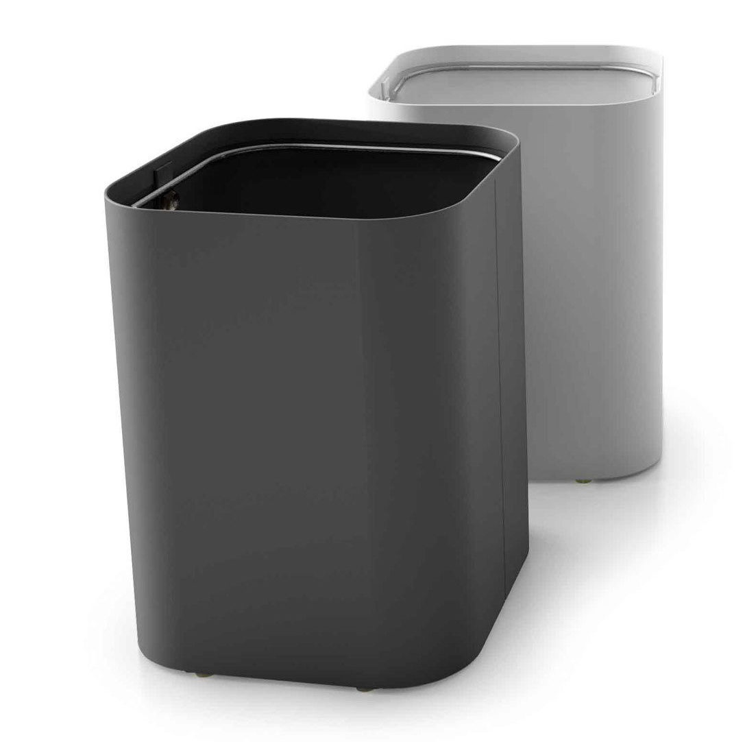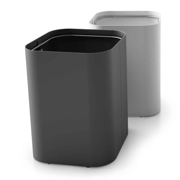 13-liter bin with lid. Made of galvanized steel and painted with baked lacquered thermoset powder. It includes a galvanized steel inner ring that holds the bag.