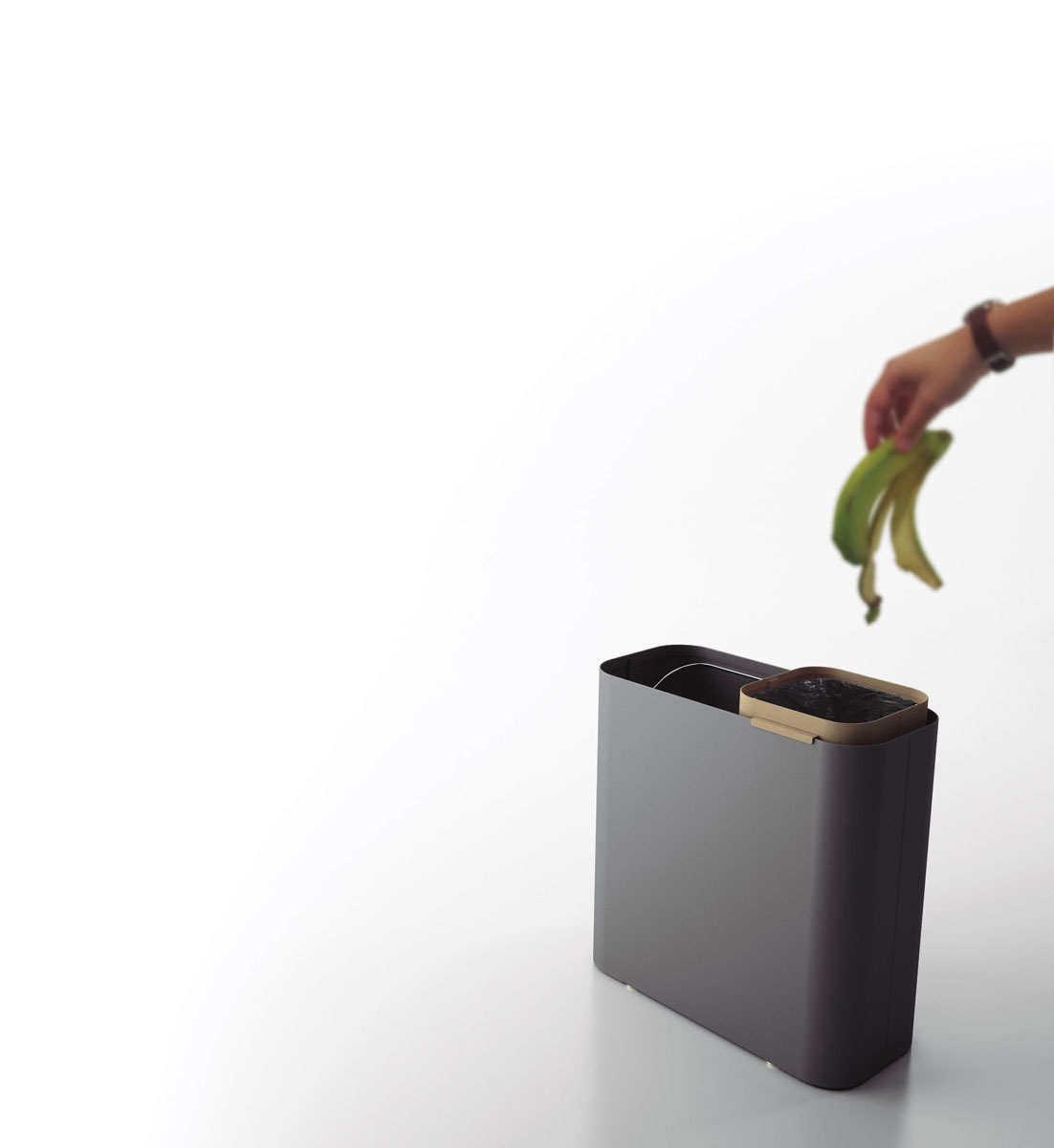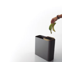 Paper bin with two separate buckets, one for packaging and larger amounts of rubbish and another bucket for organic or other waste. Paper bin and hoop made of galvanized steel.