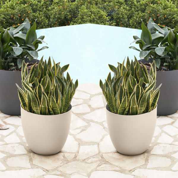 Collection of planters with a design of soft and elegant lines to create pleasant outdoor spaces. Their material, based on polypropylene, responds to the demands of any environment, giving the pieces robustness and great resistance to sunlight. In addition, their semi-natural texture and neutral colours create perfect harmony with the surrounding nature. The collection consists of two models: the pot available in three sizes and the bowl available in two sizes.