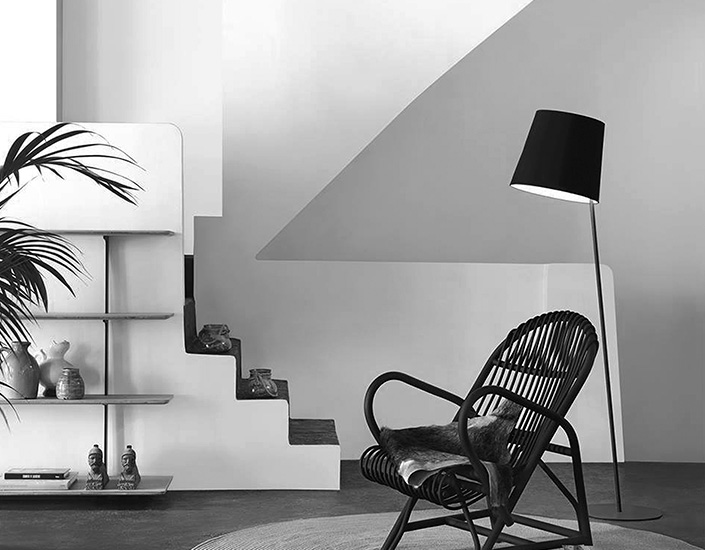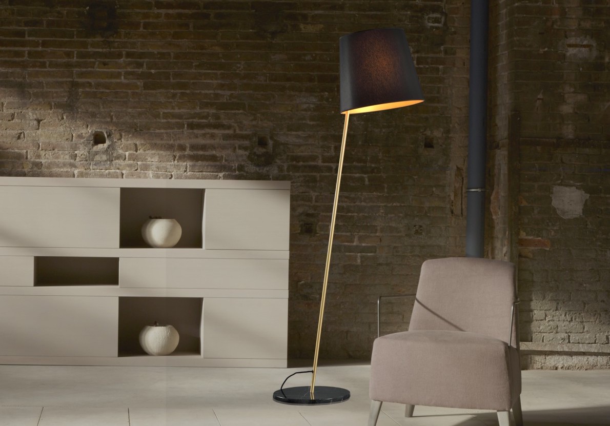 Table, wall and floor lamps which allows, as its name indicates, an eccentric control of the shade as well as the light, ideal for reading. Metal produced in matt or brass Pewter and marble base, black Marquina or white Carrara. With diffuser there are E27 or E14 LED bulbs.