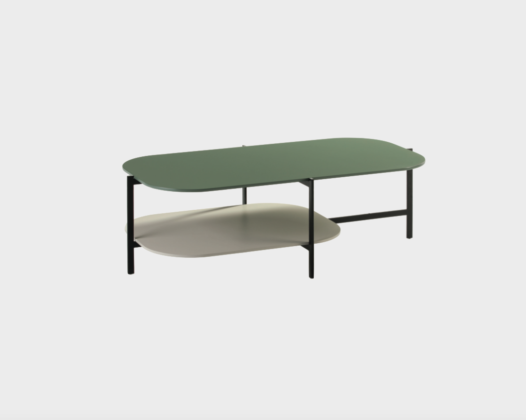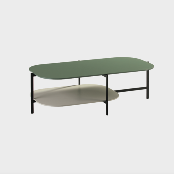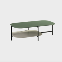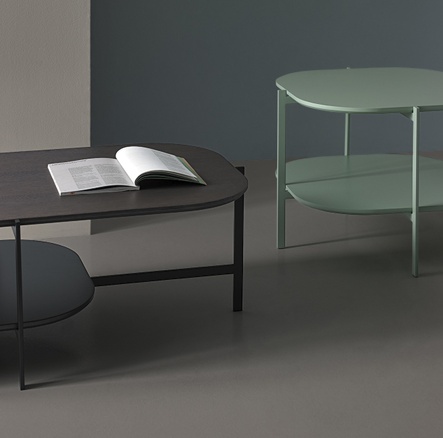 Coffee tables whose main feature is their external structure made in lacquered metal or black or white microtextured thermolacquered. Top available in veneer or lacquer, shelf finished in lacquer. Please specify structure finish, top finish and shelf finish below. The colour palette is available in the spec sheet.