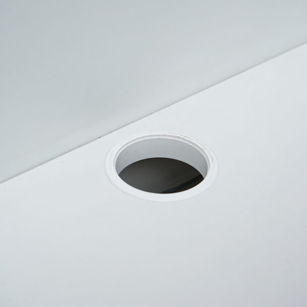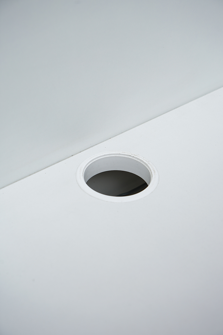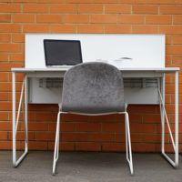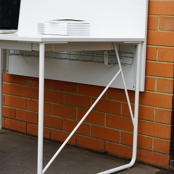 Lacquered steel structure and accessories with white laminate top.