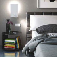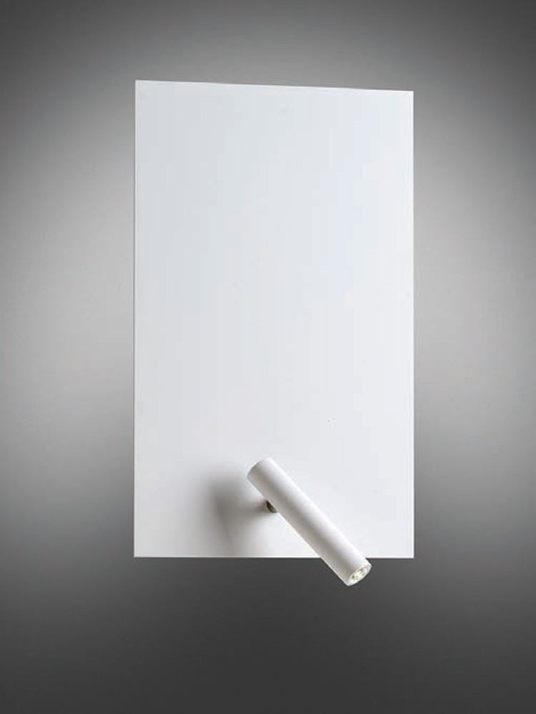 It is made of iron and is presented in a single model with two finishes, metallic nickel and white painted, although for large projects it can be painted in the color desired by the customer. The reading arm contains a LED (3W Cree 3000K 260lm) and, on the back, FLAT houses an E27 lamp holder that allows the user to choose, among all market possibilities, the incandescent or LED lamp that suits their tastes as to intensity and color of light.