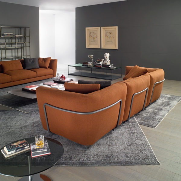 The seat collection Form consists in a metal platform combined with different elements. The main idea is to have the same cushion for the backrest and the seat. The rectangular base, an assembly of different tubular parts for supporting the backrest cushions and additionally the seat cushions in order to complete the unit. The tubular structure is available in two finishes: light and/or dark, in order to match with the fabric selected. The collection includes numerous pieces which can be combined, offering this way to create large corner compositions.