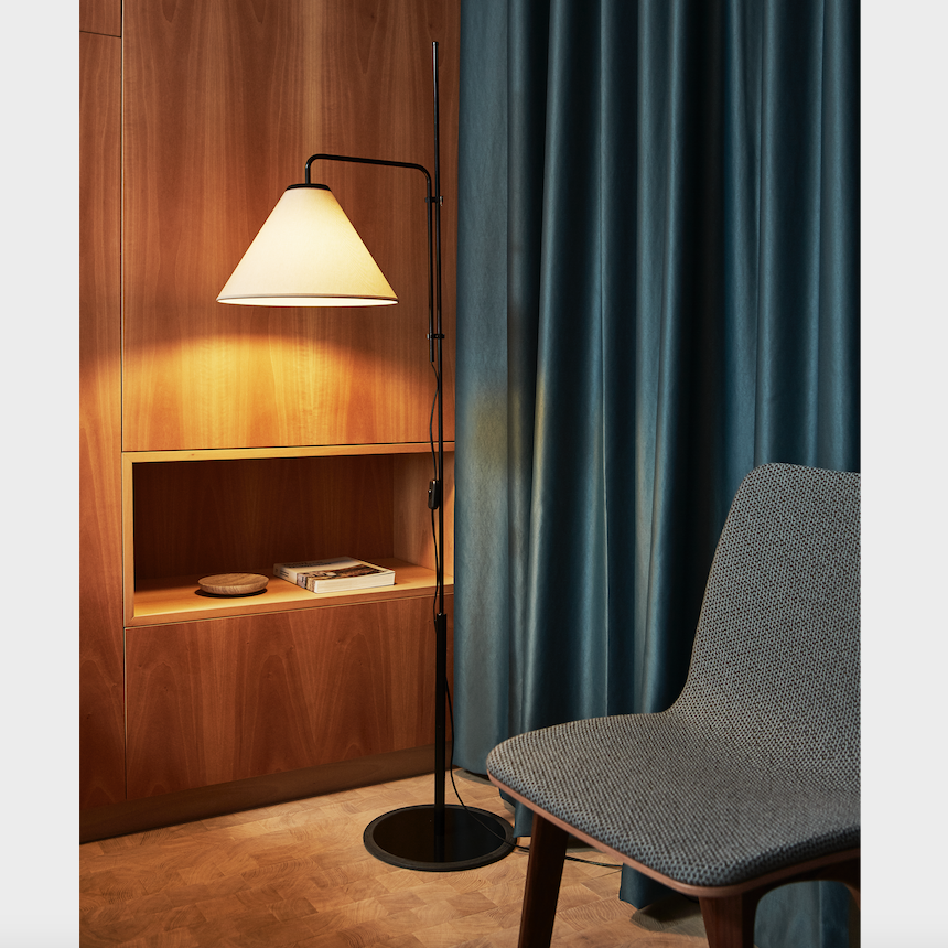 Heir to the first Funiculí, this year we present a new version with a fabric shade, a design that Lluís Porqueras first conceived in 1979 but that is only now seeing the light of day. In this new version, the cloth on the shade unlocks the light, allowing it to filter through and better illuminate the space. It shares the same structure as the original, so you can easily adjust the lamp to your desired height.