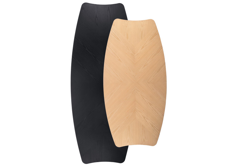 Structure and legs in solid ash. Tops in MDF veneered in ash wood, finished in natural varnish or stained black. For the stained black the edges and undersides are lacquered in black. For the natural beech top, the edges and undersides are lacquered in beige.