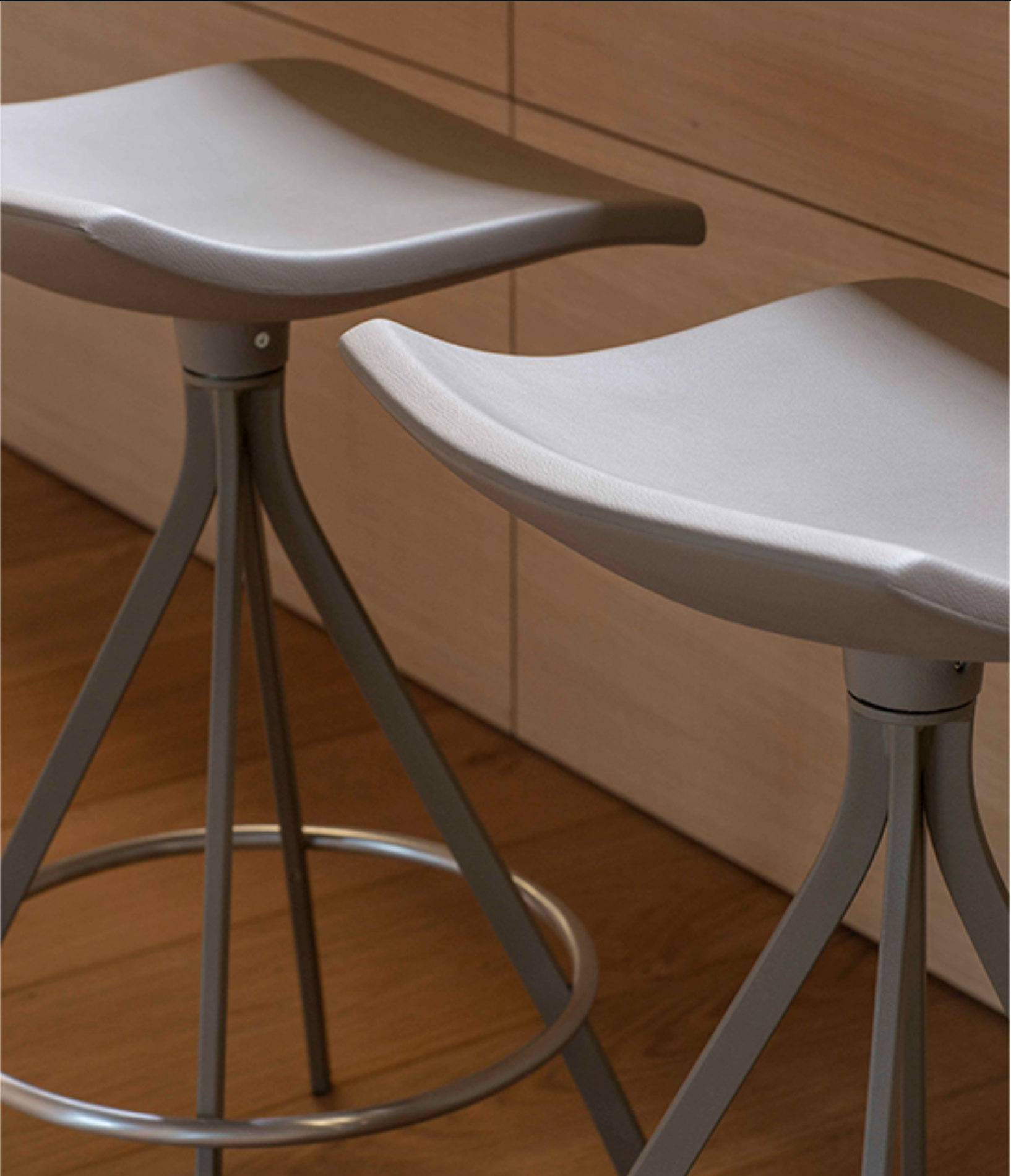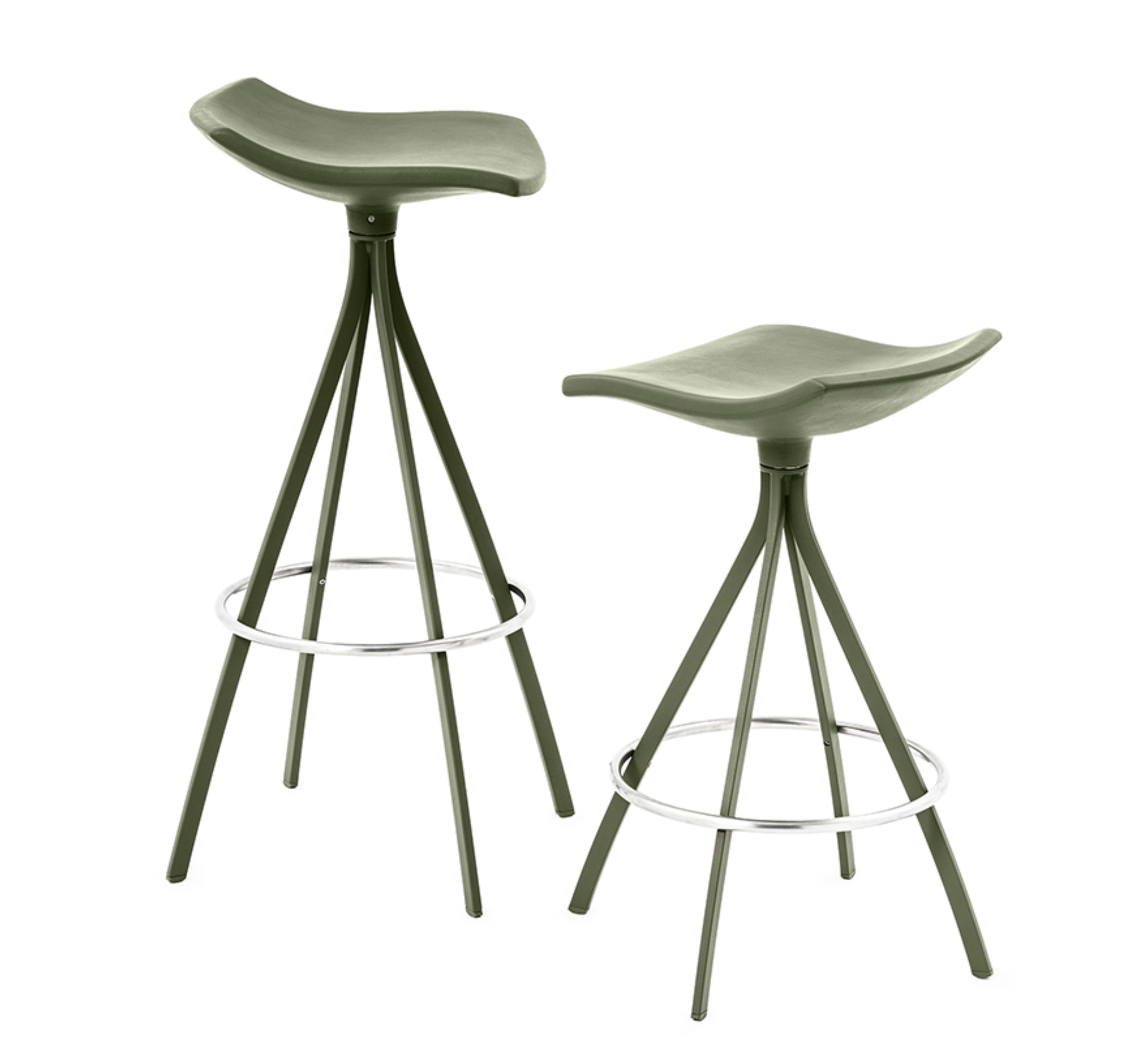 The Gimlet swivel stool is made up of a polyurethane foam swivel seat and a painted steel structure with a chrome foot rest. It’s suitable for furnishing cafeterias, catering businesses and interior decors and can be used together with the Gimlet chair from the same collection.