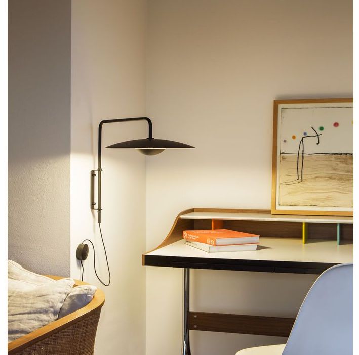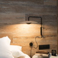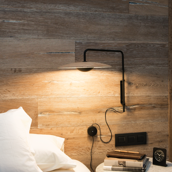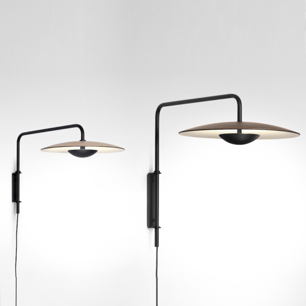 These wall versions add to the wide Ginger family a simple folding structure to the lampshade, turning it into the perfect lamp for the head of a bed, to illuminate a reading corner or even to be used as an occasional lamp over a table.