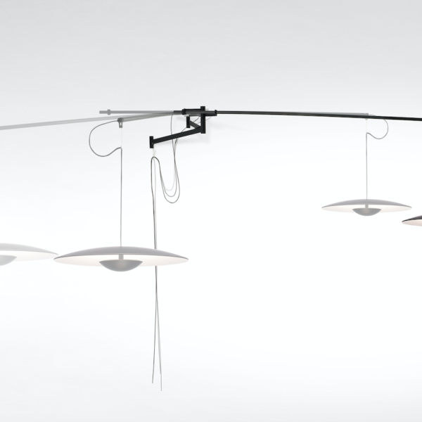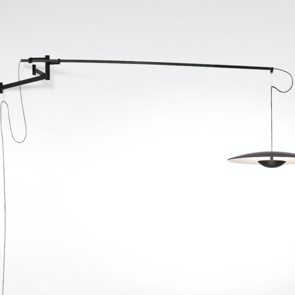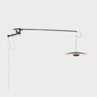 This adjustable wall lamp with a movable structure holds the lampshade and offers a free movement from one side to another, bringing stability to the whole.