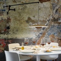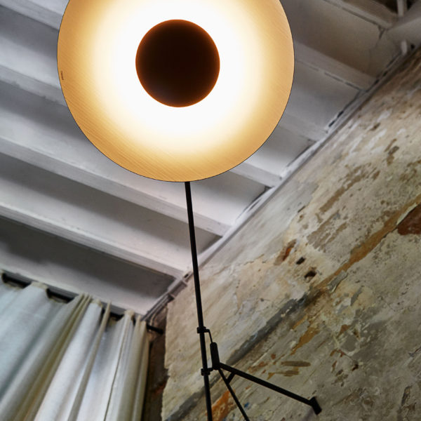 Wood is an old ally of cozy lighting. It is a material that is hard to mold, a challenge that the Ginger collection neatly resolves. The combination of sheets of wood and paper pressed together under high pressure achieves a laminate that appears almost entirely flat, which discreetly lights up spaces with indirect light.