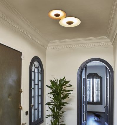 The Ginger collection has been expanded over time to provide solutions to different lighting needs, and is available in pendant, table, wall, and floor lamp versions. These ceiling lamps, which are formally extremely simple, are manufactured in three sizes. They also come in a set of two or three pieces to meet the qualities and needs of the space. The inside of the lampshade is offered not only in white but also in an oak and wenge finish, yielding different shades of light.