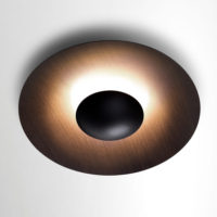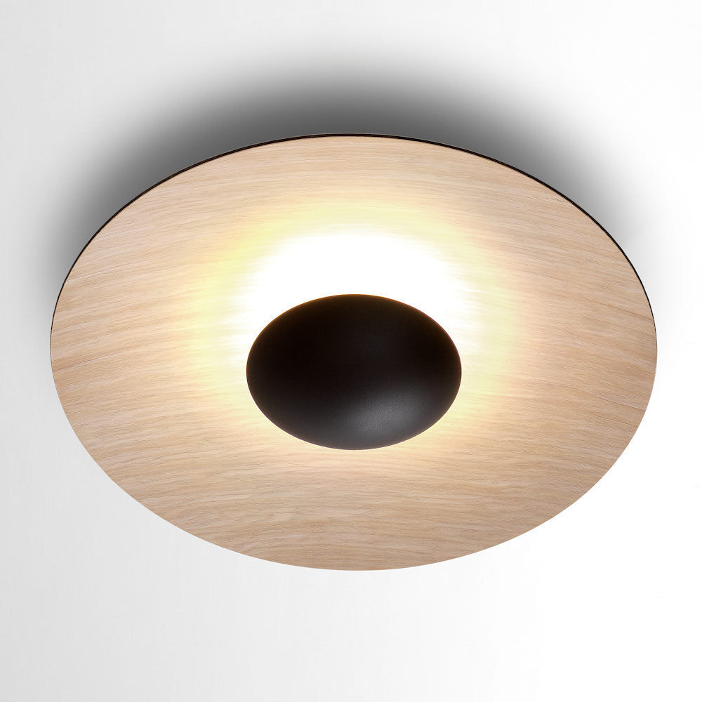 Wood is a great ally of cozy lighting. It is a material that is hard to mold, a challenge that the Ginger collection neatly resolves. The combination of sheets of wood, paper and resins pressed together under high pressure achieves a laminate that appears almost entirely flat, which discreetly lights up spaces with indirect light.