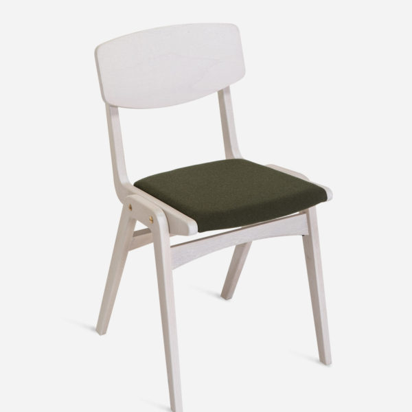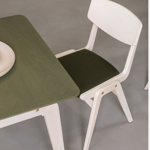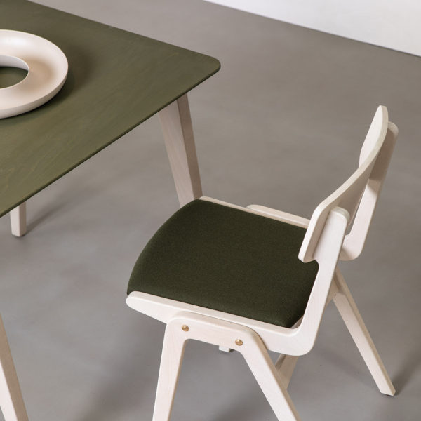 Designed by Claire Davies, the Glöwr is a warm and welcoming chair. It’s a sober, robust and long-lasting piece. Its simple and smooth lines, together with the use of wood, provide domesticity and warmth to restaurant and hotel spaces. The collection includes a stackable chair, high stool, lounge armchair and tables, all with a beechwood frame and brass joints that provide a refined touch. Through combinations of tapestry, leather and wood tones, it’s possible to modify the chairs in a variety of ways and change their appearance.