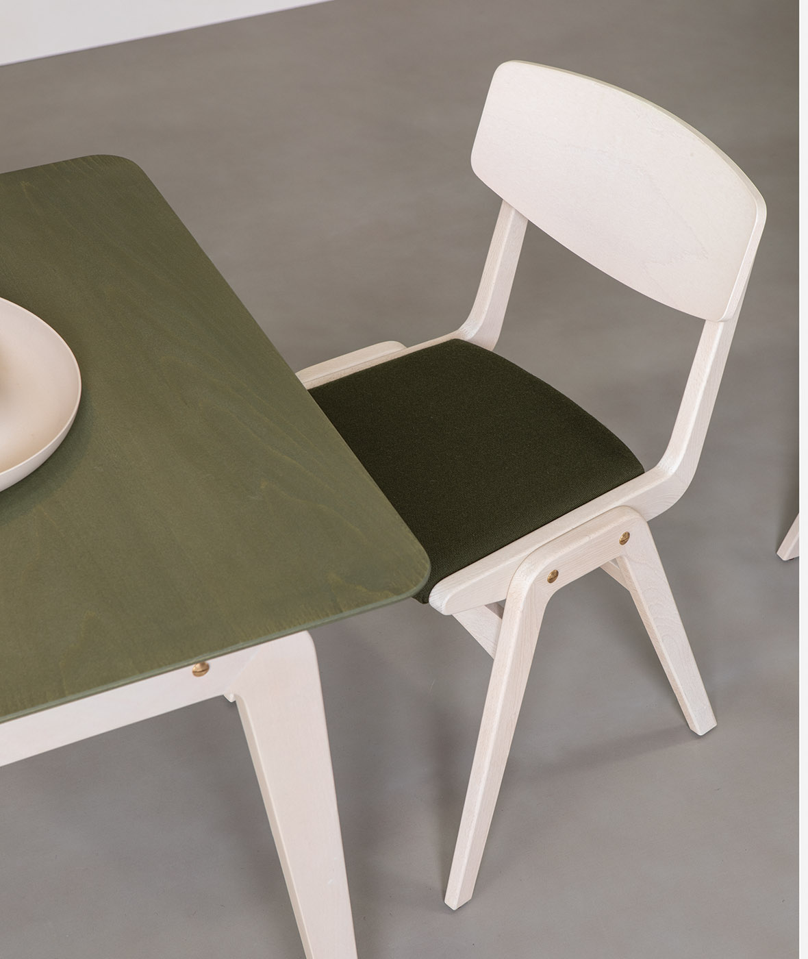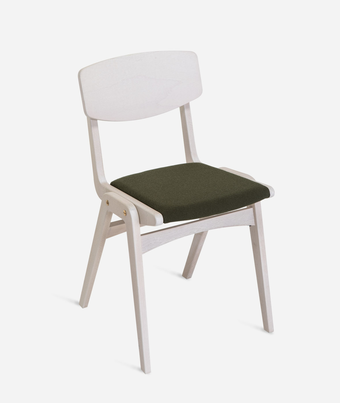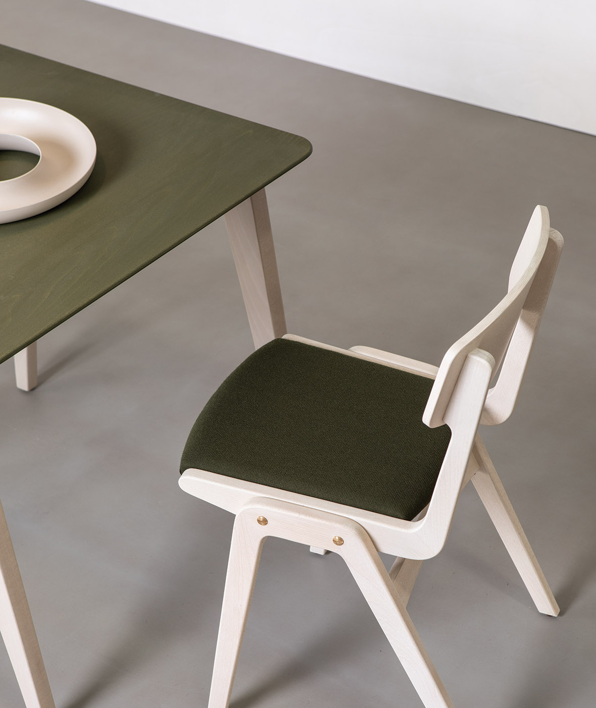 Designed by Claire Davies, the Glöwr is a warm and welcoming chair. It’s a sober, robust and long-lasting piece. Its simple and smooth lines, together with the use of wood, provide domesticity and warmth to restaurant and hotel spaces. The collection includes a stackable chair, high stool, lounge armchair and tables, all with a beechwood frame and brass joints that provide a refined touch. Through combinations of tapestry, leather and wood tones, it’s possible to modify the chairs in a variety of ways and change their appearance.