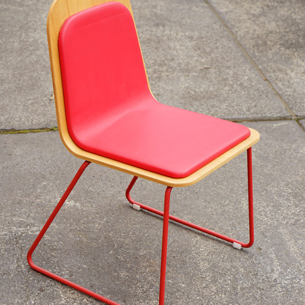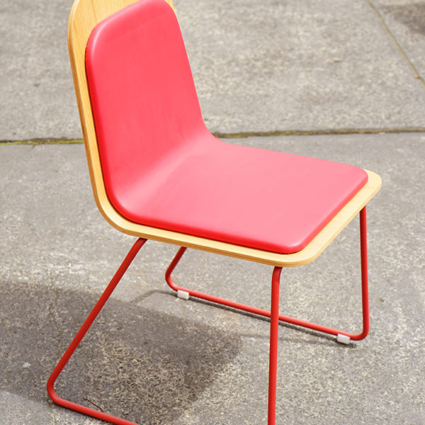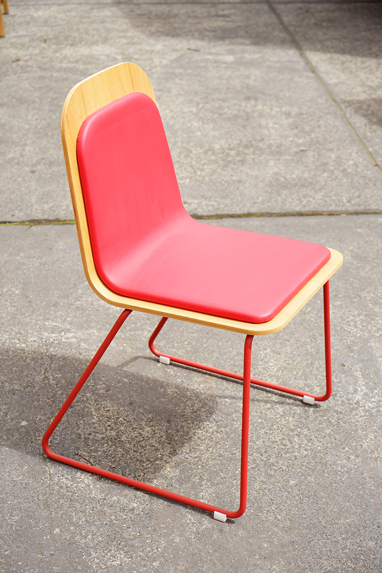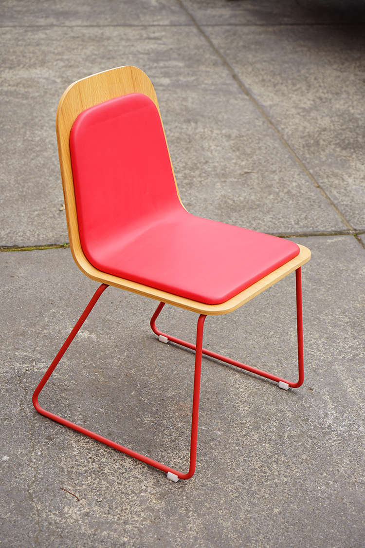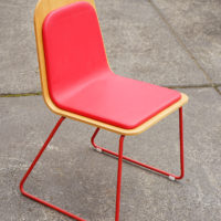 Lacquered steel structure and upholstered plywood shell.